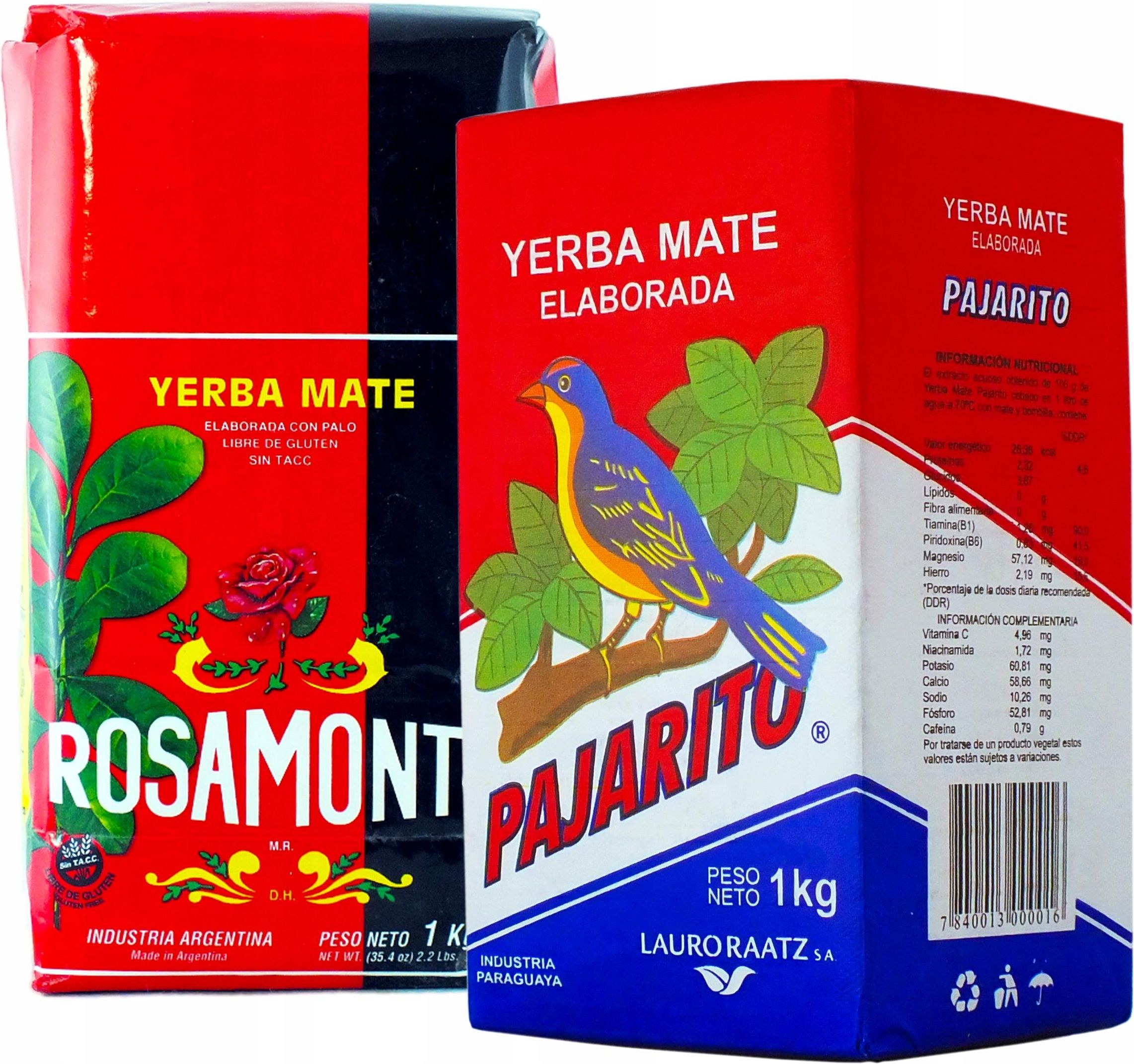 Yerba Mate Rosamonte Tradicional Con Palo 1kg 1000g Rosamonte to jedna z najbardziej znanych i lubianych marek na całym świecie. Yerba Mate Rosamonte charakteryzuje się unikalnym i niepowtarzalnym smakiem z lekko słodkawą nutą. Bez zbędnych dodatków, okaże się strzałem w dziesiątkę dla osób początkujących, zaznajamiających się ze specyficznym, acz szalenie dobrym smakiem. Rosamonte Elaborada zawiera listki i patyczki ostrokrzewu paragwajskiego. Pochodzi ze słynnej prowincji Misiones w Argentynie. Yerba Mate Pajarito Con Palo 1kg 1000g Yerba Mate Pajarito Elaborada to wysuszone gałązki i listki ostrokrzewu paragwajskiego (ilex paraguerensis), jest to roślina rosnąca w Ameryce Południowej, typowa dla takich krajów jak Argentyna , Urugwaj czy Paragwaj. W tych rejonach napar z Yerba Mate jest znany i ceniony od pokoleń. Charakteryzuje się ostrym i wyrazistym smakiem o lekko tytoniowym posmaku. Pajarito dostarcza dużej ilości energii dlatego jest często wybierana przez sportowców.