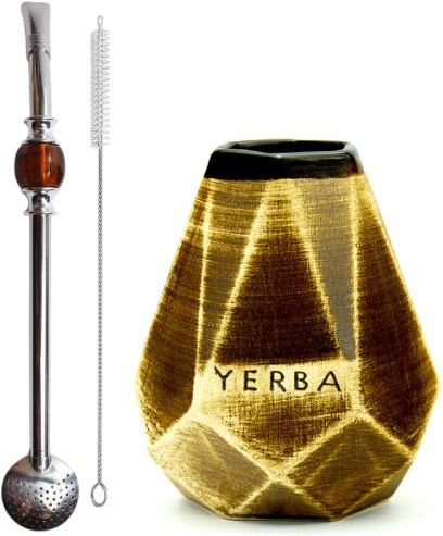 Tykwa Brązowa Diament + Bombilla - Zestaw do parzenia yerba mate Zestaw zawiera: Matero ceramiczne Diament rustykalny brązowy o pojemności 280ml Bombilla z kamieniem chłodzącym - Bursztynowa 21cm Przekonaj się że dobór odpowiednich akcesoriów przyczyni się do większej przyjemności z picia naparu …