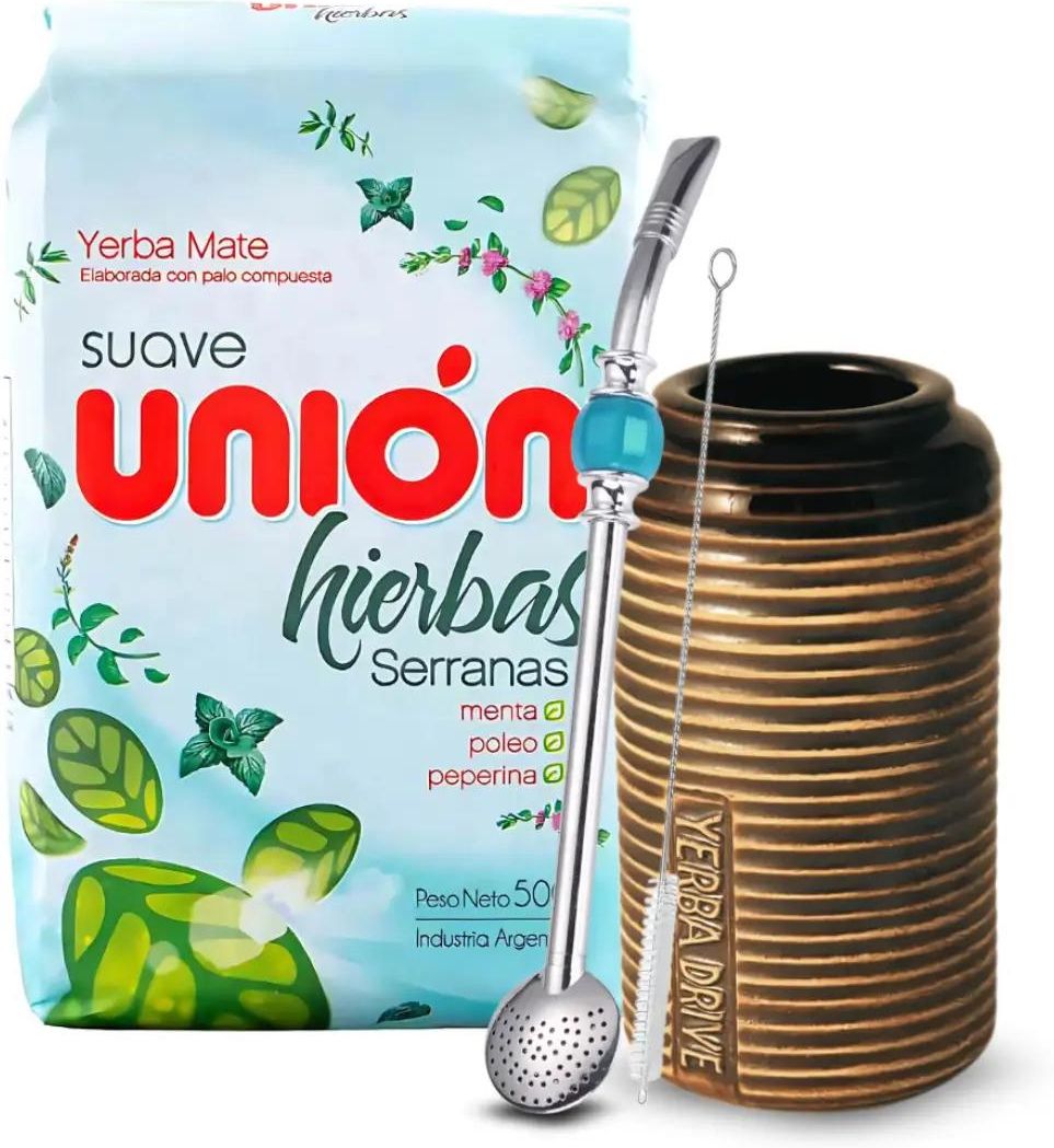 ✨Zestaw Startowy Yerba Mate Union Hierbas Serranas + Akcesoria Szukasz idealnego zestawu na początek przygody z yerba mate? Ten komplet został stworzony z myślą o osobach, które chcą spróbować yerby w tradycyjny sposób – z tykwy i bombilli. Oferujemy zestaw, który zapewni Ci pełnię smaku oraz wygodę użytkowania. ✅W skład zestawu wchodzi: Yerba Mate Unión Hierbas Serranas 500g Delikatna i aromatyczna yerba z dodatkiem ziół górskich (mięta, poleo), pochodząca z Argentyny. Doskonała dla początkujących – ma łagodny smak, który nie przytłacza, a jednocześnie orzeźwia i pobudza. Matero ceramiczne (drive) Klasyczne naczynie o pojemności ok. 250 ml. Łatwe w utrzymaniu czystości i bardzo trwałe – idealne do codziennego użytku. Bombilla ze stali nierdzewnej z kamieniem ozdobnym Solidna i wygodna bombilla z sitkiem, które skutecznie filtruje drobinki yerby, zapewniając komfort picia. Szczoteczka do czyszczenia bombilli Niezbędne akcesorium, które pozwoli Ci dokładnie wyczyścić bombillę po każdym użyciu.