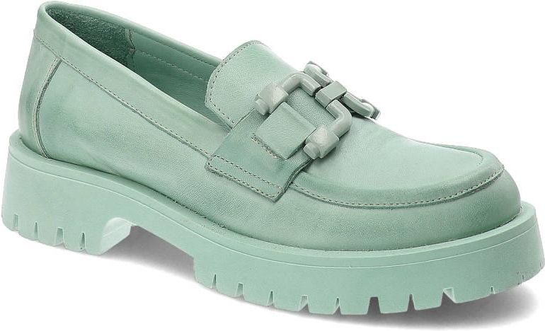 Mokasyny VENEZIA - 4000 Aqua Zielone Mokasyny Venezia Stylowe Buty Damskie Cechy produktu: Kolor: zielony Cholewka: skóra naturalna, licowa Wkładka: skóra naturalna Wnętrze: skóra naturalna Wysokość całkowita buta: 11 cm Wysokość obcasa: 4 cm Grubość podeszwy: 2,5 cm Rodzaj obcasa: płaski obcas …