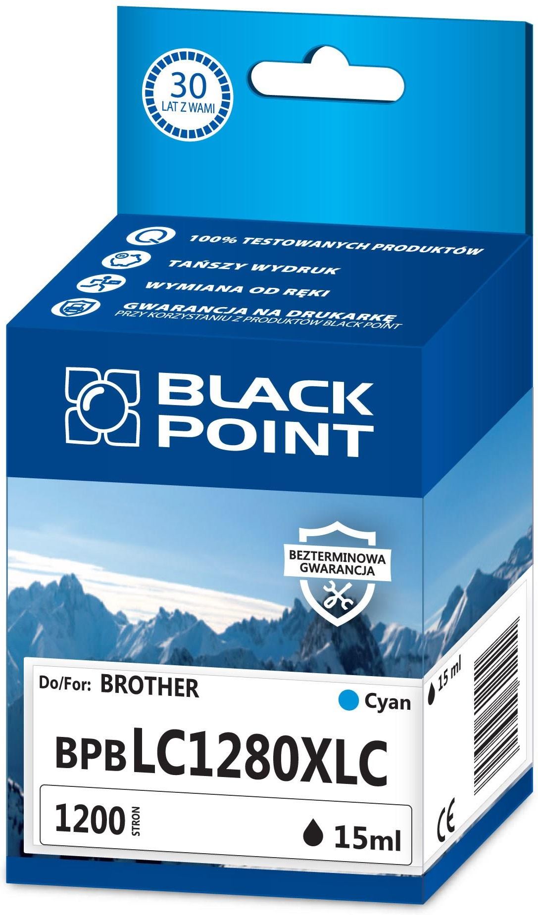 CYAN Tusz Black Point do LC-1280CZastępuje : LC-1280CKod producenta : BPBLC1280XLCKolor : CYANNie trzeba nic kombinować: wkładasz do drukarki i działaPOSTAW NA BEZPROBLEMOWĄ PIĄTKĘ I ODKRYJ DRUKOWANIE Z BLACK POINT: Bez niespodzianek – nie chodzimy na skróty, dlatego ręczymy za każdy nasz produkt, a Ty cieszysz się perfekcyjnym wydrukiem.Bez czekania – awarie zdarzają się nawet najlepszym, ale z Black Point nie musisz martwić się na zapas. W ciągu 24 godzin dostarczymy nowy produkt wprost pod Twoje drzwiBez usterek – jeśli Twoja drukarka wydaje niepokojące dźwięki, a korzystasz z naszych tonerów – bierzemy to na siebie! Naprawimy Twój sprzęt, a w międzyczasie możesz bezpłatnie korzystać z urządzenia zastępczego.Bez stresu – używasz tonerów BP Zgłoś się do programu „Extra 6" i zyskaj dodatkowe pół roku gwarancji na drukarkę laserową.Bez straty czasu – nie wiesz, jaki toner wybrać Twoja drukarka nie pracuje tak, jak powinna Skorzystaj z naszego koła ratunkowego i dzwoń śmiało na Infolinię pod nr. tel. 800 166 054.BLACK POINT – BEZ PROBLEMU!