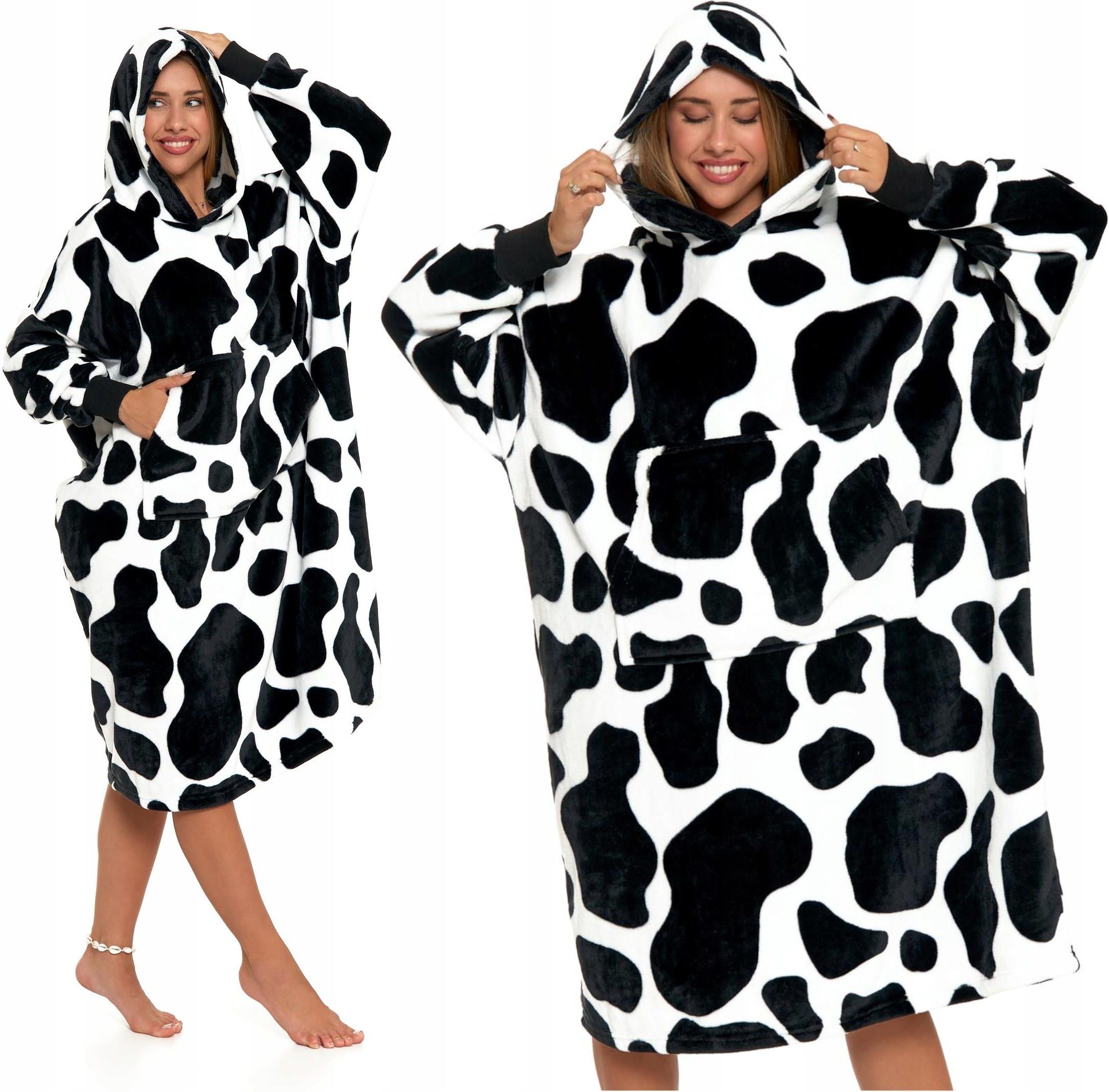 Bluza z Kapturem Koc Kocobluza Duża Gruba Ciepła na Zimę w Łaty Krowa Moraj Wiślica