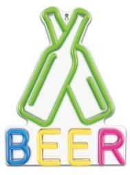 Neony LED Forever Light Lubisz ciekawe aranżacje i zabawę światłem? Neony LED Forever Light zapewnią piękny efekt kolorowej poświaty w pomieszczeniu. Świetnie sprawdzą się jako ozdoby do ustawienia na półce w salonie lub dekoracyjne oświetlenie w pokoju dziecięcym. Uchwyt w neonie pozwala na zawieszanie oświetlenia na pionowych powierzchniach. Nastrojowe światło będzie pasowało do wnętrz restauracji, barów i innych przestrzeni, gdzie barwy wyjątkowo podkreślą atmosferę miejsca. To, co wyróżnia neony to ich jednolite rozpraszanie światła, bez zauważalnych punktów świetlnych. Dzięki technologii LED neony pobierają stosunkowo niewiele prądu. Urządzenie może być zasilane przez 3 baterie AA lub wtyczkę USB. Neony są dostępne w wielu kształtach i kolorach m. in. białym, pomarańczowym, zielony, czerwonym i różowym. Urządzenie jest wykonane z plastiku w białym kolorze. Wymiary są uzależnione od rodzaju wzoru. Cechy produktu: - technologia LED; - uchwyt do zawieszania na ścianie; - modne wzory; - zasilanie za pomocą 3 baterii AA lub wtyczki USB; - różne kolory światła w zależności od modelu. Wzór: BEER Piwo Kolor: Wielokolorowy Rodzaj diody: LED Wymiary (mm) dł. x szer.x wys.: 30 x 38 x 1,6 cm Napięcie wejściowe: 5V ⎓ 1A (USB) lub 4.5V ⎓, 3xAA 1.5V ⎓ Zasilanie: 3 x bateria AA USB Długość kabla: 2 m Waga netto: 220 g Wzór: BEER Piwo Kolor: Wielokolorowy