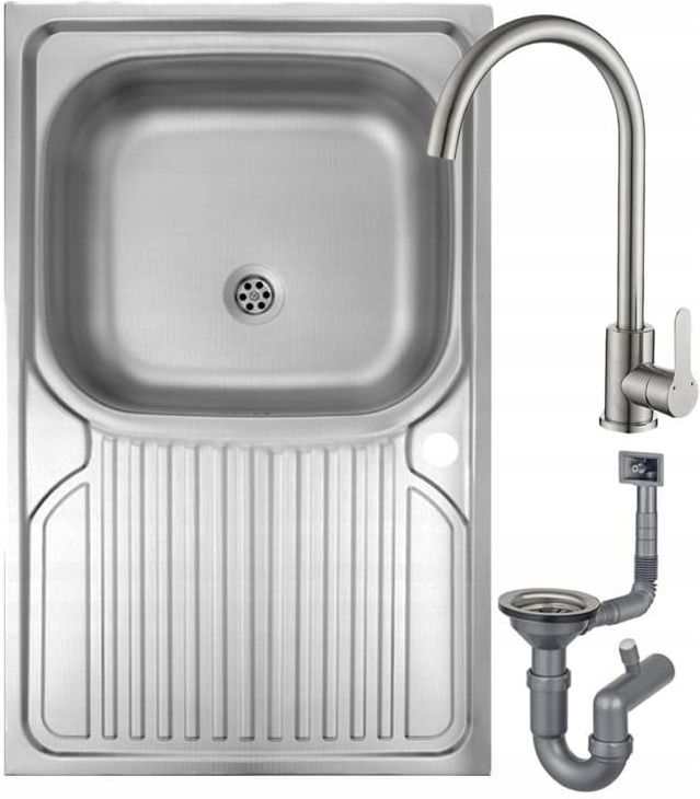 Zlewozmywak jednokomorowy stalowy 80x50+ otwór na baterię + bateria + syfon Zestaw kuchenny to idealne połączenie funkcjonalności i elegancji, które sprawdzi się w każdej kuchni. Składa się z praktycznego jednokomorowego zlewu Apollo, stylowej baterii kuchennej Kuchinox Mono oraz syfonu, zapewniając kompleksowe wyposażenie strefy zmywania. Dzięki wysokiej jakości materiałom i nowoczesnemu designowi zestaw ten jest nie tylko estetyczny, ale również trwały i łatwy w użytkowaniu. W skład zestawu wchodzą Zlew jednokomorowy Apollo z ociekaczem – Nowoczesny i funkcjonalny zlew nakładany to doskonały wybór do każdej kuchni. Dzięki kompaktowym wymiarom i praktycznemu ociekaczowi zapewnia komfort codziennego użytkowania. Satynowe wykończenie nadaje mu elegancki wygląd i zwiększa odporność na zarysowania. Bateria kuchenna Kuchinox Mono – to idealne uzupełnienie nowoczesnej kuchni. Wykonana z wysokiej jakości mosiądzu i stali nierdzewnej, zapewnia trwałość i odporność na korozję. Obrotowa wylewka oraz ceramiczna głowica gwarantują komfort użytkowania i precyzyjną regulację strumienia wody. Syfon – Zestaw zawiera syfon, który jest kompatybilny ze zlewem Apollo i zapewnia sprawne odprowadzanie wody. Dzięki wysokiej jakości materiałom jest odporny na uszkodzenia i łatwy w montażu. Usługa wycięcia otworu pod baterię – możliwość wycięcia otworu pod baterię w miejscu A lub B. Zalety Kompleksowe rozwiązanie – zestaw zawiera wszystkie niezbędne elementy do stworzenia funkcjonalnej strefy zmywania. Nowoczesny i elegancki wygląd – minimalistyczna bateria i satynowe wykończenie zlewu doskonale komponują się z różnymi aranżacjami kuchni. Trwałość i odporność – wysokiej jakości stal nierdzewna, mosiądz i ceramiczna głowica zapewniają długą żywotność. Funkcjonalność – duża komora, ociekacz i obrotowa wylewka zwiększają wygodę użytkowania. Łatwy montaż – zestaw zawiera wszystkie elementy, co pozwala na szybkie i bezproblemowe zamontowanie. Parametry baterii Marka: Kuchinox Kolor: Srebrny Rodzaj: Stojąca Typ: 1-uchwytowa Wylewka: Obrotowa Materiał: Mosiądz, stal nierdzewna Głowica: Ceramiczna Parametry zlewozmywaka Typ: 1-komorowy z ociekaczem Rodzaj: Nakładany Wymiary produktu: 80x50x16 cm Ociekacz: Tak Odpływ: 2 cale Grubość stali: 0,6 mm Do szafki: 80 cm Wykończenie: Satyna Istnieje możliwość wycięcia otworu pod baterię w miejscu A lub B. Wybrane miejsce należy podać w uwagach do zamówienia. W przypadku braku podania informacji zlew zostanie dostarczony bez otworu na baterię.
