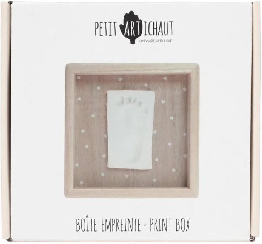 Petit Artichaut Ramka na odcisk - Serca Ramka na odcisk umożliwia stworzenie niezapomnianej pamiątki z pierwszych chwil życia Twojego maluszka. Ta elegancka, kwadratowa ramka z uroczym wzorem serduszek będzie doskonałą ozdobą w każdym domu. Można ją postawić na półce lub powiesić na ścianie, tworząc subtelną dekorację, która przyciągnie uwagę i wzbudzi ciepłe wspomnienia. W zestawie znajduje się drewniana ramka z ochronną szybą, hipoalergiczna glina, wałek oraz instrukcja, dzięki której w prosty sposób stworzysz wyjątkową pamiątkę. Cechy produktu: Idealny prezent z okazji narodzin dziecka. Szybki i łatwy sposób na wykonanie odcisku. Bezpieczny dla skóry dziecka. Piękna dekoracja, która stanie się sentymentalną pamiątką na lata. Ramka na odcisk to elegancka ramka, która pozwoli Ci uchwycić najpiękniejsze wspomnienia z dzieciństwa Twojego maluszka, łącząc funkcjonalność z delikatnym, serduszkowym wzorem, który doda ciepła każdemu wnętrzu. Drewniana ramka: należy czyścić miękką, suchą ściereczką. Glina hipoalergiczna: aby na długo zachowała swoje właściwości należy trzymać w temperaturze pokojowej, w suchym miejscu i z dala od światła.