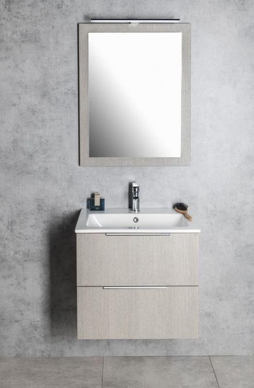 Sapho Cirasa Zestaw Szafka Podumywalkowa 58X40X55 Cm + Umywalka Meblowa 60X40 Cm + Bateria Umywalkowa + Lustro 80X60 Cm + Oświetlenie Led Dąb Srebrny Wiślica