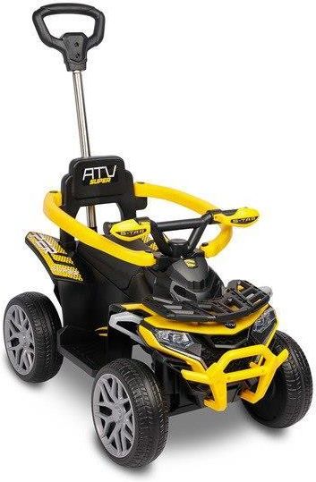 MAŁY QUAD - WIELKA FRAJDA Jeździk Movix to wyjątkowy pojazd zaprojektowany z myślą o najmłodszych miłośnikach motoryzacji. Inspirowany wyglądem prawdziwego quada, łączy w sobie sportowy design, bezpieczeństwo i komfort jazdy. Idealny dla dzieci od 24 miesięcy, które uwielbiają ruch i zabawę na świeżym powietrzu. RĄCZKA DO PROWADZENIA Jeździk wyposażony jest w solidną metalową rączkę do prowadzenia, która zapewnia rodzicom pełną kontrolę nad pojazdem podczas spacerów lub w trakcie nauki jazdy. Metalowa konstrukcja jest znacznie trwalsza i stabilniejsza od plastikowych odpowiedników. Rączkę można łatwo odczepić, zamieniając jeździk w samodzielny pojazd dla starszaków. BEZPIECZEŃSTWO PODCZAS JAZDY Składana barierka chroni dziecko podczas jazdy, a podnóżki zapewniają komfort i stabilność dla najmłodszych. Solidna i wytrzymała konstrukcja daje poczucie pewności, a jednocześnie pozwala cieszyć się zabawą w domu i na świeżym powietrzu. KOMFORT I FUNKCJONALNOŚĆ Ergonomiczne siedzisko z ekoskóry zapewnia wygodę i bezpieczeństwo podczas zabawy w domu i na zewnątrz. odpowiednio wyprofilowane uchwyty ułątwiają trzymanie, a piankowe koła gwarantują cichą i płynną jazdę na każdej powierzchni. EFEKTY DŹWIĘKOWE I ŚWIETLNE Specjalny przycisk z melodiami oraz świecące elementy wprowadzają dziecko w świat radosnej, interaktywnej zabawy. Movix - mały quad, wielka frajda Jeździk Movix to wyjątkowy pojazd zaprojektowany z myślą o najmłodszych miłośnikach motoryzacji. Inspirowany wyglądem prawdziwego quada, łączy w sobie sportowy design, bezpieczeństwo i komfort jazdy. Idealny dla dzieci od 24 miesięcy, które uwielbiają ruch i zabawę na świeżym powietrzu. Rączka do prowadzenia Jeździk wyposażony jest w solidną metalową rączkę do prowadzenia, która zapewnia rodzicom pełną kontrolę nad pojazdem podczas spacerów lub w trakcie nauki jazdy. Metalowa konstrukcja jest znacznie trwalsza i stabilniejsza od plastikowych odpowiedników. Rączkę można łatwo odczepić, zamieniając jeździk w samodzielny pojazd dla starszaków. Bezpieczeństwo podczas jazdy Składana barierka chroni dziecko podczas jazdy, a podnóżki zapewniają komfort i stabilność dla najmłodszych. Solidna i wytrzymała konstrukcja daje poczucie pewności, a jednocześnie pozwala cieszyć się zabawą w domu i na świeżym powietrzu. Komfort i funkcjonalność Ergonomiczne siedzisko z ekoskóry zapewnia wygodę i bezpieczeństwo podczas zabawy w domu i na zewnątrz. Odpowiednio wyprofilowane uchwyty ułatwiają trzymanie, a piankowe koła gwarantują cichą i płynną jazdę na każdej powierzchni. Efekty dźwiękowe i świetlne Specjalny przycisk z melodiami oraz świecące elementy wprowadzają dziecko w świat radosnej, interaktywnej zabawy.