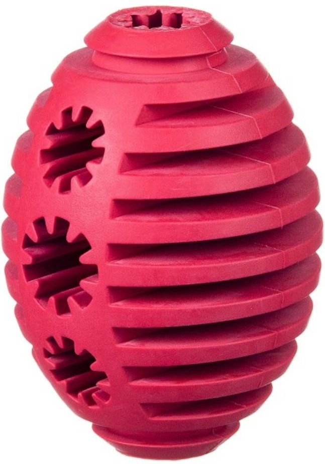 Barry King Piłka Rugby Gryzak dla psa z otworami na przysmaki czerwone / L / 12-13 cm (Kod produktu: BK-15207) Zabawka w kształcie piłki rugby od marki Barry King to produkt, który powinien posiadać właściciel każdego psa! Wykonany z wysokiej jakości kauczuku produkt, cechuje się wytrzymałym materiałem. Posiada wypustki, które masują dziąsła pupila i przyczyniają się do utrzymania prawidłowej higieny jamy ustnej. Dodatkowo produkt zawiera otwory, w które można włożyć przysmak psa. Ale to nie wszystko. Piłka w kształcie rugby posiada jeszcze wycięcia, w których można umieścić ulubioną pastę. Zabawka jest odpowiednia zarówno do tresury jak i do aktywności. W ciekawym kawowym kolorze i trzech wariantach wielkości: 7-8 cm, 10-11 cm oraz 12-13 cm. Nadaje się także do nauki aportowania. Barry King Piłka Rugby Gryzak dla psa z otworami na przysmaki Bardzo mocna i wytrzymała piłka rugby Przeznaczona dla psów w każdym wieku Wykonana z naturalnego kauczuku Doskonała do masowania dziąseł ząbkujących szczeniaków. Do gryzienia jak i do aportowania. Zabawkę możemy napełnić pastą mięsną lub innymi przysmakami. Galeria