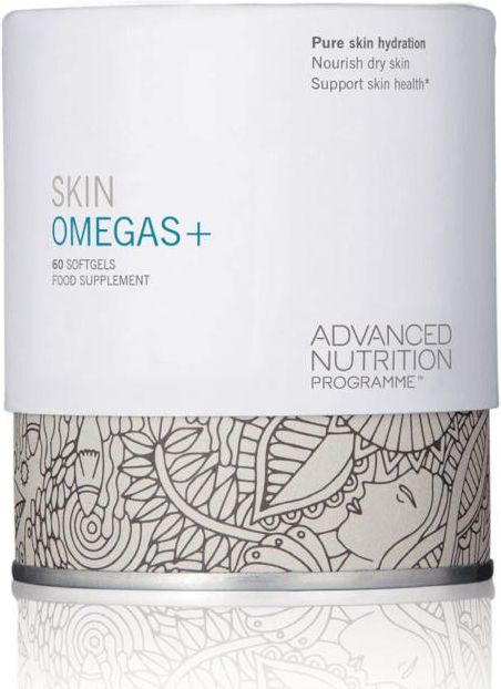 Skin Omegas+ to złożony suplement omega zawierający oleje rybie i witaminę A. Jest zalecany dla ogólnego stanu zdrowia i nawilżenia skóry, zapewniając wsparcie dla wszystkich rodzajów skóry i wysoce zalecany w przypadku suchej skóry. Skin Omegas+ to profesjonalnie skalibrowany suplement Omega 3 połączony z kwasami tłuszczowymi Omega 6 i witaminą A, aby stworzyć specjalistyczną, zrównoważoną formułę rozświetlającą skórę. Korzyści: - jak wewnętrzny balsam do skóry - nadaje skórze świetlisty blask - odżywia suchą skórę całego ciała - wspomaga zdrowie skóry Czym różni się nasza Omegas+ od innych? Większe stężenia. Skin Omegas + zawiera więcej omega 3 (EPA i DHA) na kapsułkę niż inne produkty dostępne na rynku. Równowaga. Niektóre produkty z marek konkurencyjnych mogą zawierć więcej omega 6 (GLA). Stosunek kwasów tłuszczowych omega 3 i omega 6 jest przedmiotem wielu dyskusji , gdyż nasza dieta zawiera wyższy poziom Omega-6 niż omega-3. Dlatego powinniśmy w suplementach przyjmować mniej kwasów Omega 6. Skin Omegas+ zawiera jedynie małą ilość kwasów tłuszczowych omega 6 (GLA) by utrzymać równowagę w proporcjach. Przeznaczona dla kobiet. Omega 6 w Skin Omegas+ jest w postaci oleju z wiesiołka (EPO). Z badań wynika, iż EPO zapewnia korzyści dla kobiet redukując zespół napięcia przedmiesiączkowego. Pielęgnacja skóry. Skin Omegas+ to suplement dla urody. Znajdziemy w nim witaminę A pozwalającą utrzymać piękną i zdrową skórę. Inne suplementy nie zawierają witaminy A. Dobre dla Ciebie i dobre dla środowiska. Firma Advanced Nutrition Programme zwraca uwagę na czystość składników wykorzystywanych do tworzenia suplementów, jak również zrównoważonego pozyskiwania oleju rybnego. Skin Omega+ zawiera składniki najwyższej jakości, klinicznie przebadane omega 3 z EPAX, wiodącego na świecie dostawcy słynącego z czystości, jakości i innowacyjności. Żadnych sztuczek marketingowych. Pozostałe marki dodają omega 9 do swoich suplementów. W przeciwieństwie do kwasów omega 3 i 6, omega-9 nie jest sklasyfikowany jako niezbędny kwas tłuszczowy. To dlatego, że może być utworzony w organizmie z nienasyconych kwasów tłuszczowych. Dobrym jej źródłem jest oliwa z oliwek. Różne firmy dodają do omega 9 olejów do celów marketingowych. W Skin Omegas+ pozostawia się więcej miejsca na Omegę 3. Odpowiedni dla wszystkich rodzajów skóry w wieku od 16 lat, Skin Omegas+ wspiera zdrowie skóry i podaje, że szczególnie odżywia suche typy skóry.