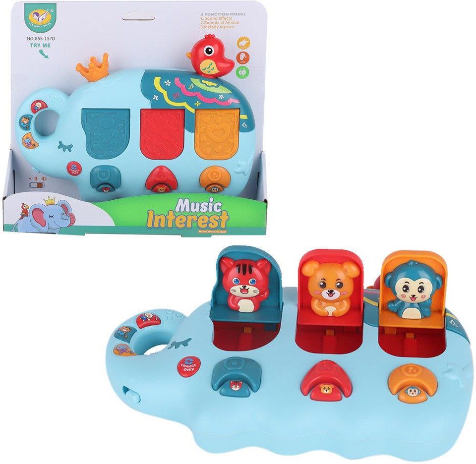 Zabawka muzyczna słonik ASKATO ✅ ✔️ Muzyczny słonik to idealna zabawka dla malucha - wpływa na integrację sensoryczną dziecka, rozwija zmysł dotyku, wzroku oraz słuchu. Zabawka ma 3 okienka z różnymi zwierzątkami, które można otwierać i zamykać, a tej zabawie towarzyszą dźwięki z odgłosami …