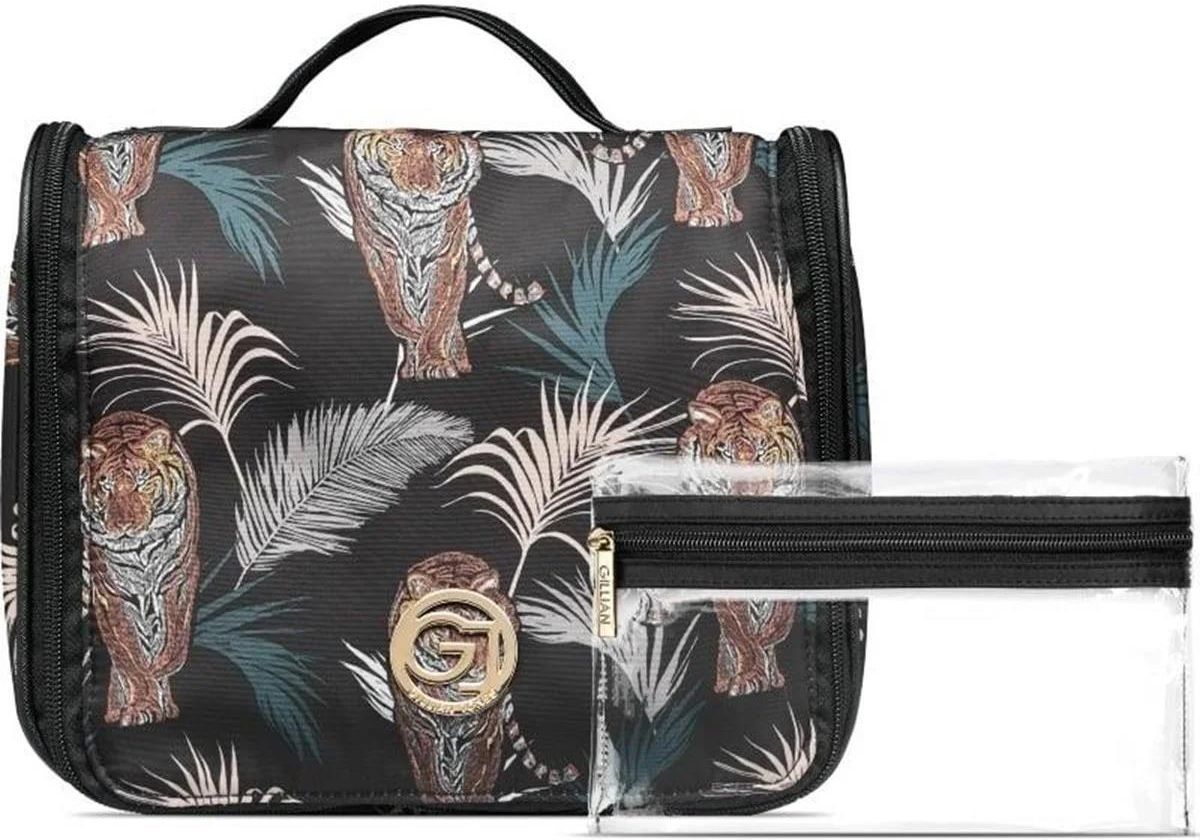 Gillian Jones - Spa Hang Up Organizer - Palm Print Features a large compartment, 5 open pockets and 3 zippered pockets. The toiletry bag also includes a check-in bag for air travel that meets IATA regulations and is made from PVC-free plastic. A hook allows you to hang the toiletry bag. Large …