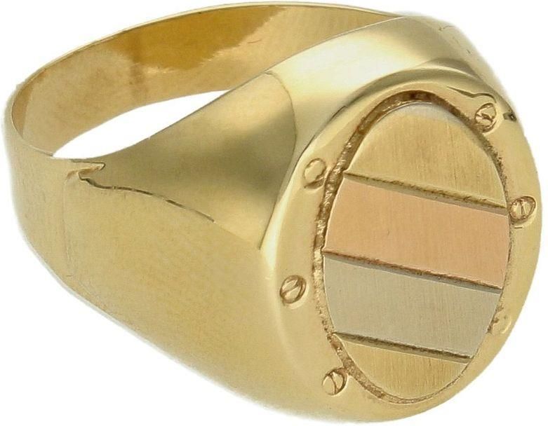Złoty sygnet 585 owalny Trzy kolory złota, bulgari z ozdobnymi nacięciami. Męski sygnet wykonany z 14 karatowego żółtego złota. Męska biżuteria idealna na wszelkie okazje. Złota biżuteria wykonana z próby 585 o ciekawej, niepowtarzalnej formie, która zachwyci każdego mężczyznę. Sygnet ten dzięki …
