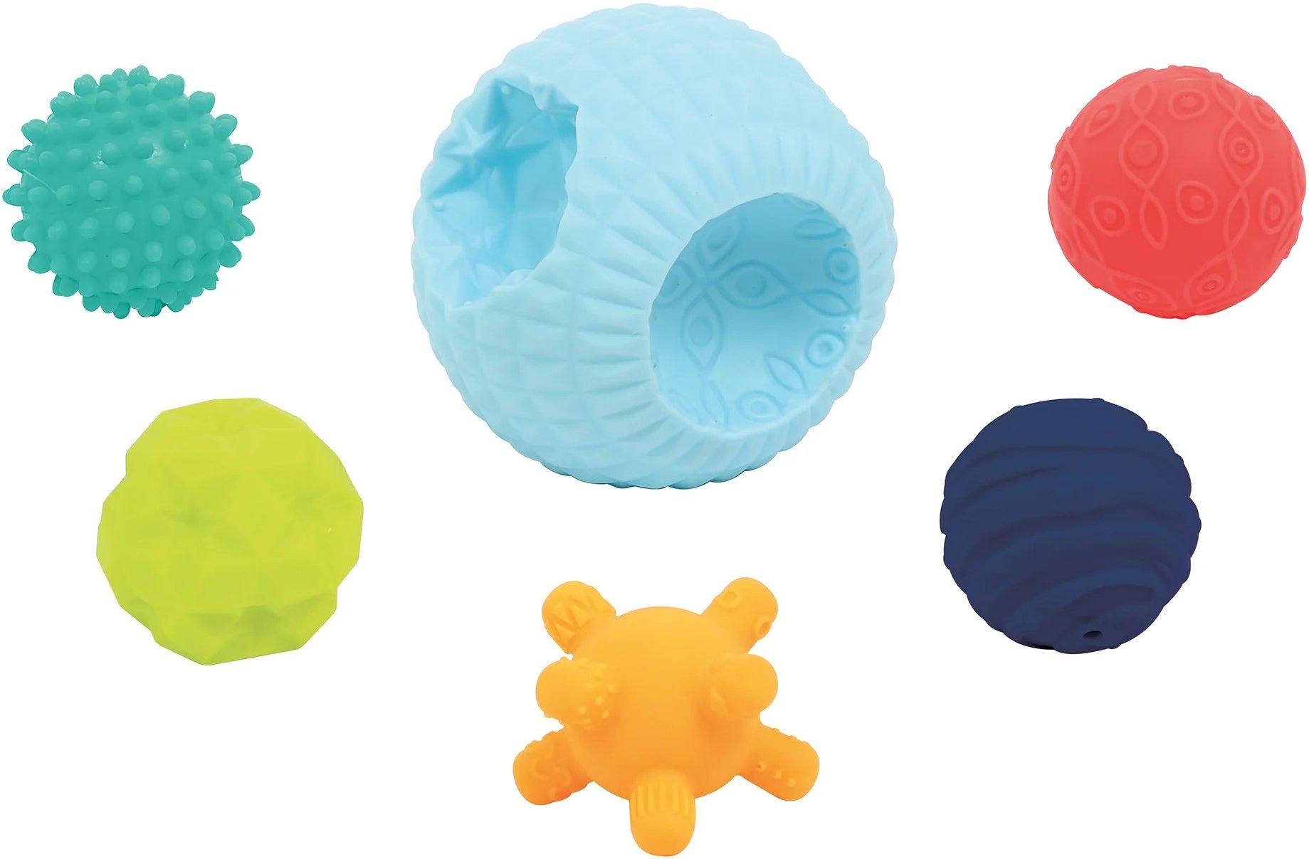 Zabawna łamigłówka Ta układanka polega na dopasowaniu małych kulek do dużej kuli. Gra pomaga dzieciom uczyć się kolorów i kształtów oraz wzmacnia pamięć, zdolności motoryczne i logikę. Małe kulki mają różne struktury i mogą być również używane, dopóki nie pojawią się zęby, a dziąsła nie będą swędzieć. Piłeczki można łatwo wyczyścić wilgotną szmatką. Wiek: +6 miesięcy Rozmiar opakowania: 20 x 20 x 15 cm Rozmiar produktu: Ø 12 cm i Ø 6 cm Materiał: 100% PVC