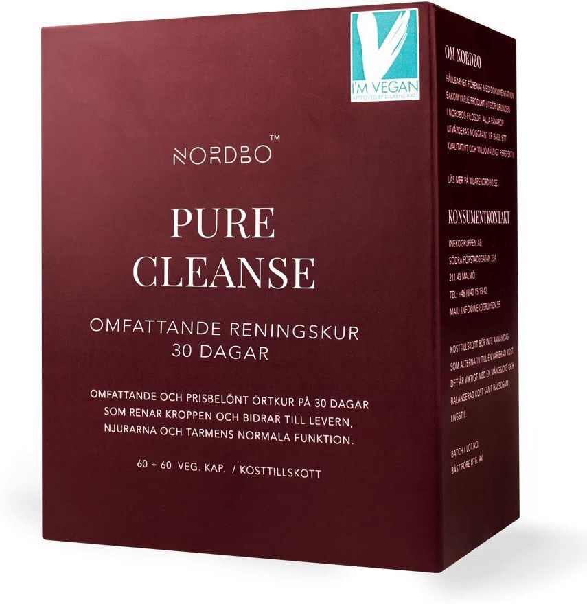 Nordbo - Pure Cleanse (detoks), 120 kapsułek Nordbo Pure Cleanse wprowadza zupełnie nowy standard w ziołowych suplementach oczyszczających. Łącznie 19 (!) Aktywnych składników ziołowych podzielonych na porcje poranne i wieczorne zapewnia kompleksowe oczyszczenie całego organizmu oraz najbardziej ruchliwych miejsc, które dbają o usuwanie nieczystości. Substancje zawarte w Pure Cleanse działają nieprzerwanie – wspomagają wydalanie toksyn z organizmu, wspierają naturalną funkcję trawienia (jednocześnie nie działają przeczyszczająco) oraz aktywują naturalne ośrodki detoksykacji organizmu. Pure Cleanse jest przygotowany na 30-dniowy peeling - 2 kapsułki rano, 2 kapsułki wieczorem. W sumie poznasz moc 19 składników aktywnych: Kompleks poranny (Morgon) 1-sze warzywo warzywne - warzywa używane w naszym kraju przed wiekami, pochodzące z basenu Morza Śródziemnego i Ameryki Południowej 2.kurkuma - roślina o kilkuset potwierdzonych korzyściach 3.chlorella - jedno z najbogatszych źródeł antyoksydantów 4. korzeń kremu z mniszka lekarskiego n - intymna znajoma roślina o działaniu oczyszczającym, pomaga aktywować naturalne ośrodki w ciele 5. modrzew zachodni - źródło antyoksydantów 6. burak - źródło antyoksydantów 7. prorok - działania wzmacniające 8. większy pływak - działania wzmacniające 9. zasiana kukurydza - działania wzmacniające 10. dywizja drobnokwiatowa - wzmocnienie działań, stabilizacja 11. Koniczyna łąkowa - źródło antyoksydantów Kompleks wieczorowy (Kväll) 1.magnez - metabolizm 2.amalaki - amalaki stanowią 1/3 trihalu - cud ajurwedy 3.bibhitaki - bibhitaki forma 1/3 trihalu - cud ajurwedy 4.haritaki - haritaki stanowią 1/3 trihalu - cudu ajurwedy 5.aloes - źródło antyoksydantów Kora VI olchy - źródło antyoksydantów 8.proskurník lékařský - źródło antyoksydantów Posiadam certyfikat weganizmu Certyfikat I'm Vegan przyznawany jest przez szwedzką organizację Djurens Rätt (Prawa Zwierząt), która gwarantuje, że produkt jest w 100% roślinny i do jego produkcji nie zostały użyte żadne składniki pochodzenia zwierzęcego. Certyfikat przyznawany jest żywności, suplementom diety, artykułom higienicznym i kosmetykom. I'm Vegan to prosty sposób dla konsumenta, aby upewnić się, że marka lub produkt spełnia standardy Djurens Rätt. Składniki Zioła wymienione w tabeli poniżej, kapsułki ziołowe (celuloza). Czyste oczyszczanie MORGON 2 kapsułki Karczoch warzywny (Cynara scolymus) 150 mg Kurkuma (Curcuma longa) 150 mg Chlorella (Chlorella pyrenoidosa) 100 mg Korzeń kremu z mniszka lekarskiego (Taraxacum officinale) 80 mg Modrzew (Larix occidentalis) 60 mg Burak (Beta vulgaris) 40 mg Bupleurum chińskie 40 mg Łopian większy (Articum lappa) 40 mg Kukurydza (Zea mays) 40 mg Vebascum thapsus 40 mg Koniczyna łąkowa (Trofolum pratense) 40 mg Pure Cleanse KVĘLL 2 kapsułki (% RHP*) Korzeń rabarbaru (Rheum palmatum) 800 mg Magnez (wodorotlenek magnezu) 250 mg (66%*) Triphala 100 mg - w tym Amalaki - agrest indyjski (Emblica oficinalis) 33,4 mg - w tym Bibhitaki - owoc Myobalan (Terminalia belerica) 33,4 mg - w tym Haritaki - owoc garbnika (terminalia chebula) 33,4 mg Aloes (Aloe Barbadensis) 20 mg Kora olchy czerwonej (Ulmus rubra) 20 mg Prawoślaz lekarski (Althaea officinalis) 20 mg *% RHP - Referencyjna wartość spożycia witamin i minerałów Dawkowanie 2 kapsułki rano na czczo (z opakowania MORGON) i 2 kapsułki wieczorem przed snem (z opakowania KVĘLL). Wypij dużą szklankę wody, pij wystarczająco dużo w ciągu dnia. Opakowanie zawiera 30 dawek. Ostrzeżenie: Nie nadaje się dla dzieci, kobiet w ciąży i karmiących. Nie przekraczać zalecanej porcji do spożycia w ciągu dnia. Nie zastępuje zróżnicowanej diety. Przechowywać w chłodnym, suchym miejscu, poza zasięgiem dzieci. Odpowiedni dla wegan. Wielkość paczki 120 kapsułek (2 x 60 kapsułek) (85,7 g)