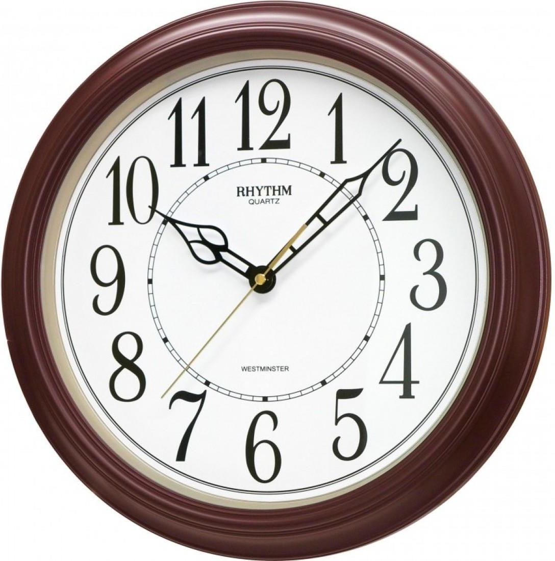 Zegar ścienny do salonu brązowy Rhythm CMH726NR06 to zegar ścienny z kolekcji zegarów ściennych japońskiej marki Rhythm. Jest to zegar na ścianę idealny na prezent. Ścienny zegar RHYTHM CMH726NR06 wyposażony jest w kwarcowy mechanizm, zasilany za pomocą baterii. Posiada bardzo wysoką dokładność …