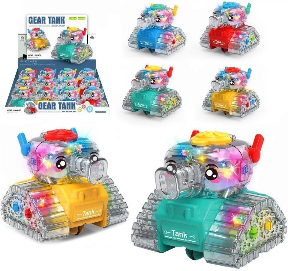 Przeźroczysty czołg w którym po ruszeniu wieżyczki załącza się światło. MIX - wysyłka losowa Wymiary: 87x150 mm Grupa wiekowa: 3+