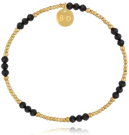 Bransoletka By Dziubeka BTW3066 z kamieniami. Surowiec: stal szlachetna. Kolor surowca: złoty. Kamienie: turmaliny. Wielkość elementów: 0,20 cm ; 0,28 cm. Średnica bransoletki: 5,30 cm bez rozciągania gumki.