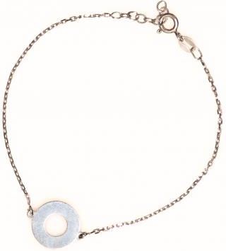 Ta delikatna i subtelna bransoletka typu celebrytka wykonana została z wysokiej jakości srebra próby 925. Biżuteria ozdobiona jest nigdy nie wychodzącym z mody, minimalistycznym kółkiem. Utrzymany w całości w srebrnej kolorystyce ten biżuteryjny akcent stanowi niezwykle prosty, lecz bardzo elegancki pomysł na prezent dla każdej bliskiej osoby.Długość bransoletki: regulowana od 18cm do 20cm