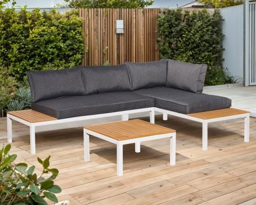 Narożnik ogrodowy VENTO to połączenie minimalistycznej formy z elegancją. Lekka, stalowa konstrukcja w matowym białym kolorze nadaje mu nowoczesnego charakteru. Drewniane elementy dodają zestawowi ciepła i przytulności. Miękkie poduszki, wykonane z wysokiej jakości tkaniny akrylowej, zapewniają …