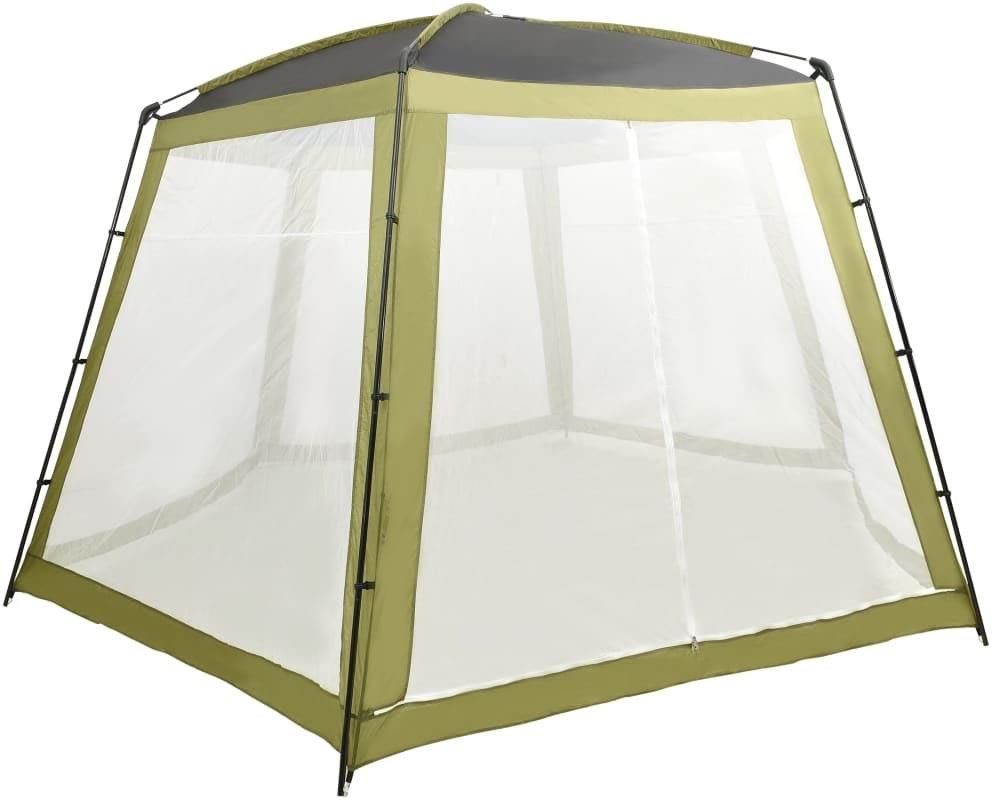 Namiot basenowy to idealny dodatek pozwalający uzyskać cień. Osłona może służyć do ochrony przed słońcem lub jako zadaszenie dla grupy osób. Namiot ogrodowy wykonany jest z tkaniny poliestrowej z powłoką PA, dzięki czemu jest odporny na działanie promieni UV i wody. Dzięki mocnej stalowej ramie namiot jest solidny i wytrzymały. Dzięki siatkowym ściankom bocznym ta osłona przeciwsłoneczna jest dobrze wentylowana. Nadaje się do okrągłych basenów o maksymalnej średnicy 300 cm. Kolor: zielony Materiał: tkanina z powłoką PA, stal Wymiary ogólne: 500 x 433 x 250 cm (dł. x szer. x wys.) Gramatura tkaniny: 180 g/m² Ze ściankami bocznymi z siatki Produkt odporny na wodę i promieniowanie UV Odpowiednia do okrągłych basenów o średnicy 300 cm Do zestawu dołączono 6 lin i 12 kołków