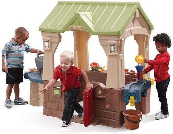 Domek posiada wyznaczone strefy tematyczne, które sprawiają że w domku może bawić się jednocześnie większa ilość dzieci. Jedną z wielu atrakcji jest wodna pompa z obracającym się młynkiem łopatkowym. Dodatkowo znajdziemy tu wiele akcesoriów takich jak wiaderko czy pojemnik na wodę. Domek posiada także imitację nowoczesnego grilla z otwieraną pokrywą, obracającymi się pokrętłami oraz zestawem akcesoriów takich jak łopatka czy szczypce, które sprawiają że zabawa staje się jeszcze bardziej atrakcyjna. Kolejną zaletą tego domku jest kącik małego ogrodnika ze skrzynkami na kwiatki i dodatkowymi doniczkami, w których można posadzić prawdziwe rośliny. Szerokie drzwi oraz przestronna strefa z grillem zapewniają łatwy dostęp do każdego miejsca w domku. Dopracowane detale takie jak skrzynka na listy, domek dla ptaków czy ozdobne naklejki zapewniają wyjątkowo atrakcyjny wygląd. Wymagany jest montaż przez osobę dorosłą. Step2 jest jedną z największych amerykańskich firm produkujących i rozprowadzających zabawki, mieści się ona w Streetsboro w stanie Ohio. Step2 w swojej ofercie dla dzieci w wieku przedszkolnym i wczesnoszkolnym posiada m.in. kuchnie domki, zabawki ogrodowe i domowe, takie jak: piaskownice i place zabaw, a także samochody i jeździki. Założyciele firmy Step2 swoje doświadczenie zdobywali w korporacji Little Tikes, właśnie to pozwala im tworzyć produkty najwyższej klasy. Produkty Step2 cechuje wysoka jakość wykonania, a także najwyższy poziom bezpieczeństwa i trwałości. Marka Step2 jest gwarancją dobrej zabawy oraz wszechstronnego rozwoju dziecka.Waga: 27,5 Kg Wiek: od 18 miesiąca Wymiary opakowania: 98,4 x 54 x 115,3 cm Wymiary produktu: 137,2 x 179,1 x 95,3 cm