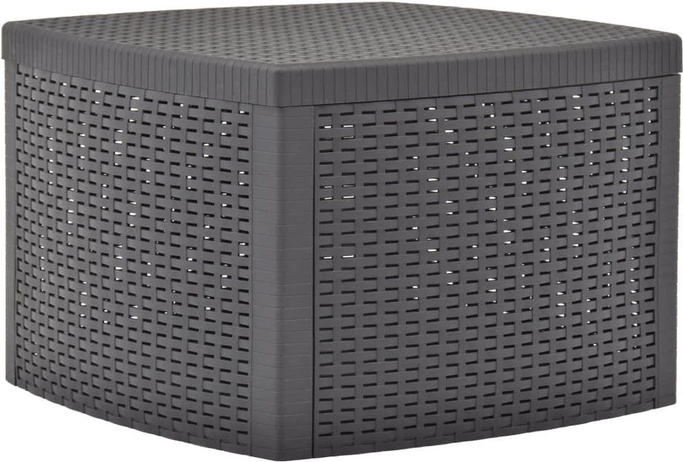 Powiększ swój zestaw mebli ogrodowych o ten wielofunkcyjny stolik! Ten stolik ogrodowy jest wykonany z odpornego na warunki pogodowe i niewymagającego konserwacji polipropylenu z nowoczesnym, płaskim rattanowym splotem i stylowymi elementami. Nie musisz martwić się o odbarwienie materiału, rdzewienie, niszczenie lub łuszczenie, co czyni stolik boczny idealnym do codziennego użytku na zewnątrz! Dodatkowo, mebel posiada wygodny schowek na wszelkie przedmioty, które chcesz trzymać bliżej podczas relaksu w ogrodzie. Kolor: mokka Materiał: tworzywo sztuczne (100% polipropylen) Wymiary ogólne: 54 x 54 x 36,5 cm (szer. x gł. x wys.) Wymiary wewnętrzne: 52 x 52 x 35 cm (szer. x gł. x wys.) Atrakcyjna tekstura płasko plecionego rattanu Z wygodnym miejscem do przechowywania napojów Produkt odporny na czynniki atmosferyczne