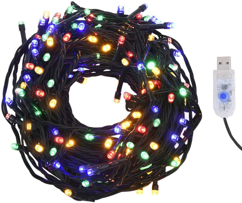 Sznur z 400 kolorowymi lampkami LED, 40 m, 8 efektów Sznur lampek LED jest nie tylko idealną dekoracją na święta, ale sprawdzi się także jako przepiękna ozdoba Twojego salonu, schodów, ogrodu lub pokoju dziecięcego. Sznur zawiera 400 energooszczędnych diod LED o dużej mocy, które emitują jasne światło. Ta urocza dekoracja świąteczna jest odporna na działanie wody, a zatem odpowiednia do użytkowania zarówno w pomieszczeniach, jak i na zewnątrz. Oferuje ona 8 różnych efektów świetlnych: tryb kombinowany, fale, sekwencja, powolne rozświetlanie, mruganie, powolne przygaszanie, migotanie i światło ciągłe. Te magiczne światełka pięknie rozświetlą przestrzeń za pomocą wybranego efektu. Stwórz radosną, świąteczną atmosferę za pomocą tego efektownego sznura lampek! Uwaga: dołączone złącze USB nie jest wodoszczelne, więc nie może mieć kontaktu z wodą, ale dzięki 5-metrowemu kablowi lampek można używać na zewnątrz, gdyż sam produkt i kabel są wodoszczelne. Produkt ma złącze USB, ale certyfikowany zasilacz 5 V nie jest dołączony. Kolor światła: wielokolorowy Materiał: PVC Długość: 40 m Z 400 diodami LED o dużej mocy Z 8 efektami świetlnymi Produkt wodoodporny Do użytku wewnątrz i na zewnątrz pomieszczeń Z 5-metrowym kablem przedłużającym Ten produkt jest zasilany napięciem stałym 5 V, ale certyfikowany zasilacz USB 5 V nie jest dołączony. Wyższe napięcie może spowodować przegrzanie i uszkodzenie sprzętu oraz potencjalne ryzyko przegrzania i pożaru.