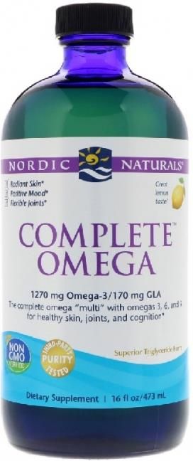NORDIC NATURALS Complete Omega (473 ml) - olej z ryb bogaty w omega-3 (EPA, DHA), omega-6 i omega-9, naturalny suplement diety w formie olejowej. 🦠 Źródło omega-3: 1270 mg w dziennej porcji (1 łyżeczka) — EPA 610 mg, DHA 405 mg, komplet omega-3 dla diety i codziennego uzupełnienia. ⚡ Oczyszczony olej z ryb (anchois, sardynek) w formie olejowej oraz naturalny aromat cytrynowy — wygodne dawkowanie: 1 łyżeczka dziennie z posiłkiem. 💚 Zawiera także omega-6, omega-9, GLA, olej z nasion ogórecznika, d-alfa-tokoferol i ekstrakt z rozmarynu — Complete Omega, suplement diety w formie oleju. NORDIC NATURALS Complete Omega (473 ml) NORDIC NATURALS Complete Omega (473 ml) – wysokiej jakości olej rybi z głębinowych ryb (anchois, sardynki), który dostarcza skoncentrowane źródło kwasów omega-3 (EPA i DHA) oraz dodatkowych tłuszczów jednonienasyconych i wielonienasyconych. Produkt idealny dla osób szukających naturalnego suplementu omega-3 w formie płynnej, polecany do codziennego stosowania jako uzupełnienie diety. 💪 Dlaczego warto wybrać ten produkt? Skoncentrowane kwasy omega-3 – 1270 mg omega-3 w dziennej porcji, w tym 610 mg EPA i 405 mg DHA, co wspiera prawidłowe funkcjonowanie serca, mózgu i wzroku. Kompleksowe spektrum tłuszczów – poza EPA i DHA zawiera omega-6, omega-9 oraz GLA, co czyni go pełnym olejem wielofunkcyjnym. Naturalne składniki – czysty olej z ryb głębinowych, naturalny aromat cytrynowy, olej z nasion ogórecznika oraz konserwujące antyoksydanty: d-alfa-tokoferol i ekstrakt z rozmarynu. Wygodna forma – butelka 473 ml pozwala na wygodne dozowanie łyżeczką; produkt odpowiedni dla osób preferujących płynną postać preparatów omega-3. 🧪 Składniki aktywne Składnik Ilość w 1 łyżeczce (dzienna porcja) Całkowita zawartość kwasów Omega-3 1270 mg EPA (kwas eikozapentaenowy) 610 mg DHA (kwas dokozaheksaenowy) 405 mg Inne omega-3 255 mg Omega-6 500 mg Omega-9 500 mg Kwas oleinowy 400 mg GLA (kwas gamma-linolenowy) 170 mg Kalorie 45 kcal 🧫 Skład Oczyszczony olej z ryb głębinowych (z anchois, sardynek), naturalny aromat cytrynowy, olej z nasion ogórecznika lekarskiego, d-alfa-tokoferol, ekstrakt z rozmarynu. Skład odpowiada za stabilność produktu oraz przyjemny smak y, dlatego jest odpowiedni dla osób, które chcą regularnie przyjmować olej omega-3 w formie płynnej. 💊 Zalecane spożycie 1 łyżeczka dziennie z posiłkiem. Stosować zgodnie z zaleceniami na opakowaniu lub zgodnie z zaleceniami specjalisty. Olej omega-3 w postaci płynnej warto przyjmować razem z posiłkiem, gdyż tłuszcze lepiej się wchłaniają w obecności innych składników odżywczych. Uwagi Suplement diety nie może być stosowany jako substytut zróżnicowanej diety. Zaleca się prowadzenie zdrowego trybu życia. Nie należy przekraczać zalecanej porcji do spożycia w ciągu dnia. Należy zachować ostrożność w przypadku uczulenia na jod, stosowania leków przeciwzakrzepowych lub planowanej operacji. W razie wątpliwości skonsultuj się z lekarzem. 📦 Zawartość opakowania Pojemność: 473 ml płynnego oleju omega-3 (butelka). 473 ml to praktyczna pojemność do codziennego stosowania przez dłuższy okres, szczególnie gdy produkt przyjmowany jest w dawce 1 łyżeczki dziennie. 🧊 Warunki przechowywania Przechowywać w suchym i chłodnym miejscu, w sposób niedostępny dla małych dzieci. Chronić przed nadmiernym światłem i ciepłem, po otwarciu zaleca się przechowywać w lodówce zgodnie z instrukcją producenta. Opis SEO:NORDIC NATURALS Complete Omega 473 ml to olej omega-3 z ryb głębinowych, który dostarcza EPA i DHA dla wsparcia zdrowia serca, mózgu i wzroku. Produkt omega-3 473 ml, olej z ryb i complete omega płyn sprawdza się jako codzienne uzupełnienie diety. Jeśli szukasz nordic naturals complete omega 473 ml lub alternatywy w formie oleju omega-3, ten preparat oferuje wysoką zawartość EPA i DHA oraz dodatkowe kwasy tłuszczowe (omega-6, omega-9, GLA). Regularne stosowanie produktu może wspierać prawidłowe funkcje organizmu, a dzięki naturalnemu aromatowi cytrynowemu przyjmowanie jest wygodne i przyjemne. Frazy: nordic naturals complete omega 473 ml, complete omega 473 ml, olej omega-3 473 ml, olej z ryb głębinowych, omega 3 płyn, nordic naturals complete omega olej rybi — użyj tych wariantów w tytule meta oraz w opisie krótkim, aby poprawić pozycjonowanie. Tekst zawiera liczne łączniki i spójniki, dlatego jest czytelny, naturalny oraz przyjazny dla narzędzi analizujących jakość treści.