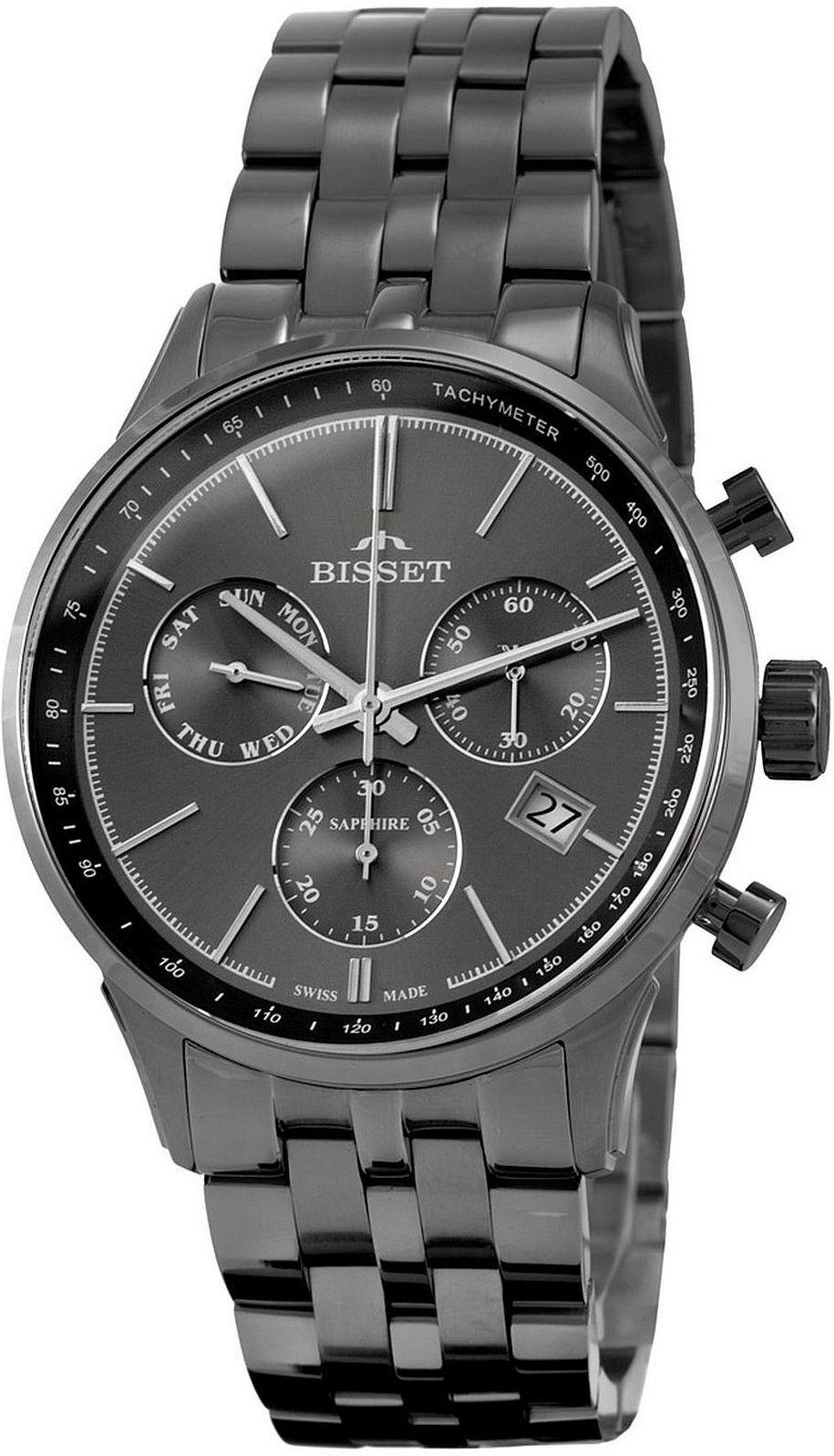 Szwajcarski Nowy Zegarek męski Bisset BIS166 na Bransolecie Zegarek męski Bisset BIS166: ➡️Mechanizm: kwarcowy ➡️Gwarancja: 2 lata ➡️Wodoszczelność: 100 m (10 bar) ➡️Kolor koperty: szary ➡️Materiał koperty: stal ➡️Kształt koperty: okrągła ➡️Zakręcany dekiel: tak ➡️Szerokość koperty: 42 mm ➡️Kolor …