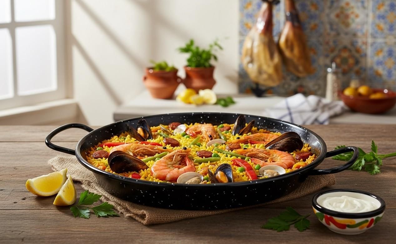 Patelnia do paelli (hiszpańska paellera ) to charakterystyczne naczynie kuchenne, służące do przygotowywania tradycyjnego dania kuchni hiszpańskiej — paelli, czyli aromatycznego ryżu z dodatkami takimi jak owoce morza, kurczak, warzywa i przyprawy (m.in. szafran). Kompaktowa patelnia emaliowana …