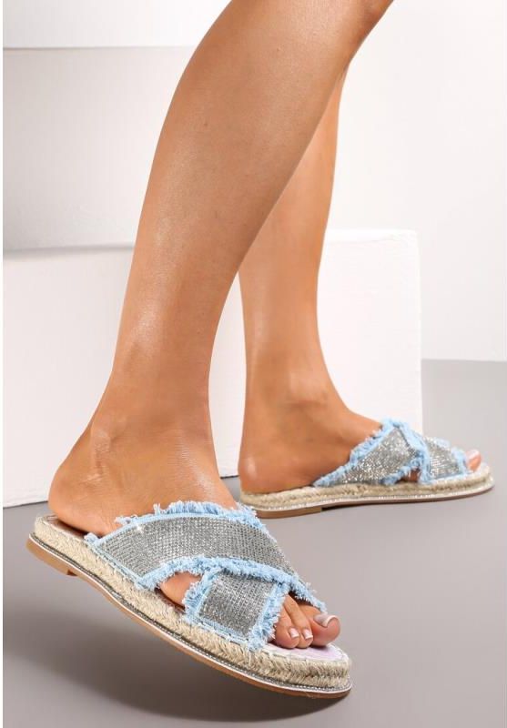 JASNONIEBIESKIE KLAPKI Z PASKAMI W FRĘDZLE NA PODESZWIE Z PLECIONKI ROZMIAR 38 Włocławek