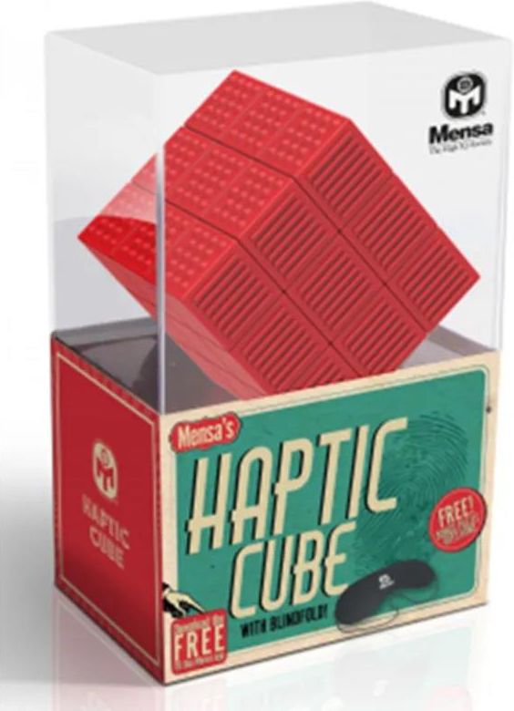 Dotykowa kostka Rubika została zaprojektowana specjalnie dla osób niewidomych przez firmę Mensa. Jest w jednolitym czerwonym kolorze. Każdej z sześciu ścian przypisano inną, dobrze wyczuwalną fakturę Sześcian o 6 różnych teksturowanych stronach. To nie jest zwykły test Mensy. Użyj dołączonej opaski na oczy i sprawdź, czy uda Ci się ukończyć tę łamigłówkę, używając tylko dotyku. Czy wiesz że? Badania wykazały, że łamigłówki i ćwiczenia umysłowe poprawiają naszą koncentrację, pamięć oraz wpływają na kreatywność i logiczne myślenie. To także dobry trening cierpliwości czy refleksu. Haptic Cube Podejmij wyzwanie, i rozwiąż łamigłówkę. Wydaję się prostę? ...Sprawdź sam czy podołasz, rozwiążesz łamigłówkę i zostaniesz mistrzem logiki! Nie daj się zwieźć, pozornie prosta łamigłówka, wcale nie jest taka oczywista. Trenuj swój mózg dzięki tej niesamowitej łamigłówce