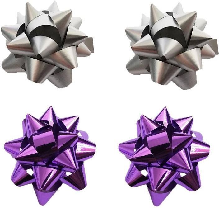 - rozetki ozdobne do pakowania prezentów - opakowanie zawiera 4 sztuki - kolory: srebro i fiolet