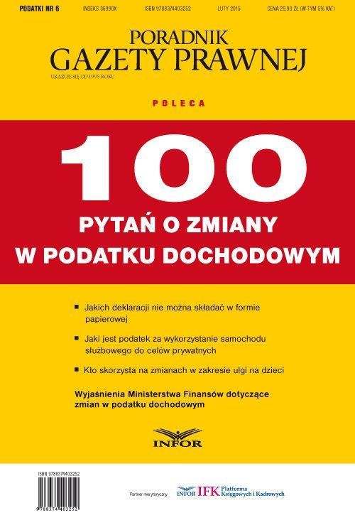 Publikacja przedstawia zmiany w rozliczeniach podatku dochodowego wprowadzone od 1 stycznia 2015 r. w przystępnej formule odpowiedzi na pytania. W publikacji m.in.: - Kto powinien w 2015 r. złożyć deklaracje elektronicznie - Jakie deklaracje muszą być złożone elektronicznie, a jakie mogą być składane w formie papierowej - Kto powinien podpisać deklarację elektroniczną i w jaki sposób - Jak ustalić ryczałtowy przychód pracownika z tytułu korzystania ze służbowego samochodu w celach prywatnych - Jakie warunki trzeba spełnić aby obrót zaewidencjonowany w kasie rejestrującej wykazać jako przychód w podatku dochodowym