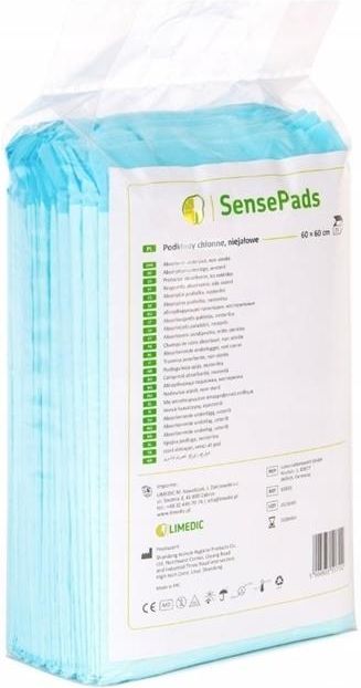 Podkłady chłonne SensePads 60 x 60 cm to niezwykle komfortowe podkłady higieniczne o wszechstronnym zastosowaniu. Wyrób medyczny odznacza się wysoką chłonnością oraz delikatnością dla skóry. Polecane są do stosowania: jako maty chłonne do przewijania niemowląt, podczas opieki nad osobami starszymi oraz schorowanymi, podczas nauki czystości psów i innych zwierząt domowych. Podkłady chłonne SensePads 60 x 60 cm są odpowiednie zarówno do użytku domowego, jak i do stosowania w szpitalach i domach opieki.