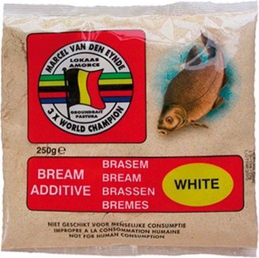 Atraktor Brasem White 250 g o białym kolorze i bardzo silnym aromacie. Najlepiej funkcjonuje w rzekach o dużym uciągu – wabi leszcze oraz krąpie z dużych odległości i długo utrzymuje je w łowisku. Atraktor o zapachu migdałowo - anyżowym, na duże leszcze Marcel Van Den Eynde - MVDE jest firmą rodzinną, która istnieje już od ponad 30 lat! W Europie prawdopodobnie nie ma wędkarzy łowiących w wodach słodkich, którzy nie łowią lub choć raz nie łowili przy użyciu produktów tej marki. Gdy Marcel Van Den Eynde założył swoją firmę, był już osobą bardzo dobrze znaną w środowisku wyczynowych wędkarzy i wraz ze swoimi zanętami stał się prawdziwą legendą sportu wędkarskiego. Produkowane przez tę firmę zanęty wytwarzane są wyłącznie z najwyższej jakości surowców. Przy tworzeniu zanęt firma korzysta z pomocy i porad utytułowanych wędkarzy sportowych, takich jak: Bob Nudd, Alan Scotthorne, Luc Vercammen (mistrz Europy z 1999 r.), Philip Carroyer (wicemistrz świata w wędkarstwie z 1997 r.) i Luc de Baets (dwukrotny mistrz Belgii). W Europie nie ma kraju, w którym nie sprzedawano by zanęt Van den Eynde; były już nawet eksportowane do Ameryki i Afryki Południowej. Obecnie firma produkuje ok. 100 zanęt z różnymi składami. Produkcja zanęt to nie jedyna gałąź wędkarstwa, którą zajmuje się ta firma. MVDE produkuje sprzęt zawodniczy, ceniony przez zawodników na całym świecie w tym baty, uklejówki, feedery.