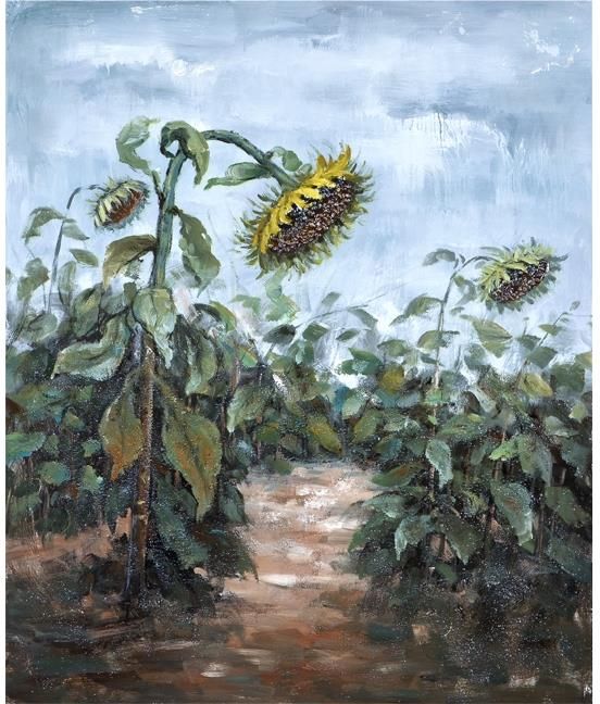 Piękny, ręcznie malowany obraz na płótnie przedstawiający słoneczniki. Obraz pokryty jest werniksem, który zabezpieczają jego powierzchnię, co wpływa na trwałość obrazu, a także dodaje mu walorów wizualnych: pogłębia ton i nadaje połysk. Obraz posiada warstwową strukturę. Nie ma jednolicie gładkiej powierzchni. Ziarna słonecznika są wypukłe, wyczuwalne w dotyku. Obraz ręcznie malowany na płótnie nigdy nie wyjdzie taki sam. Jest to zaleta i gwarancja oryginalności. Inne zalety to widoczna faktura farby, odpowiednie krosno i niepowtarzalny charakter. Te wszystkie cechy sprawiają, że obrazy z naszej oferty są produktem ekskluzywnym idealnym do powieszenia w strategicznych, widocznych miejscach w domu lub biurze. Mogą stanowić doskonały pomysł na prezent. Mając w domu ręcznie malowany obraz na płótnie gwarantujemy sobie niezastąpione doznanie estetyczne.