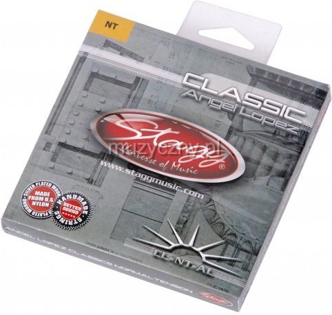 Zestaw 6 strun Normalne napięcie Struny nylonowe E, B i G Struny nawinięte, posrebrzane D, A i niskie E Do gitary klasycznej