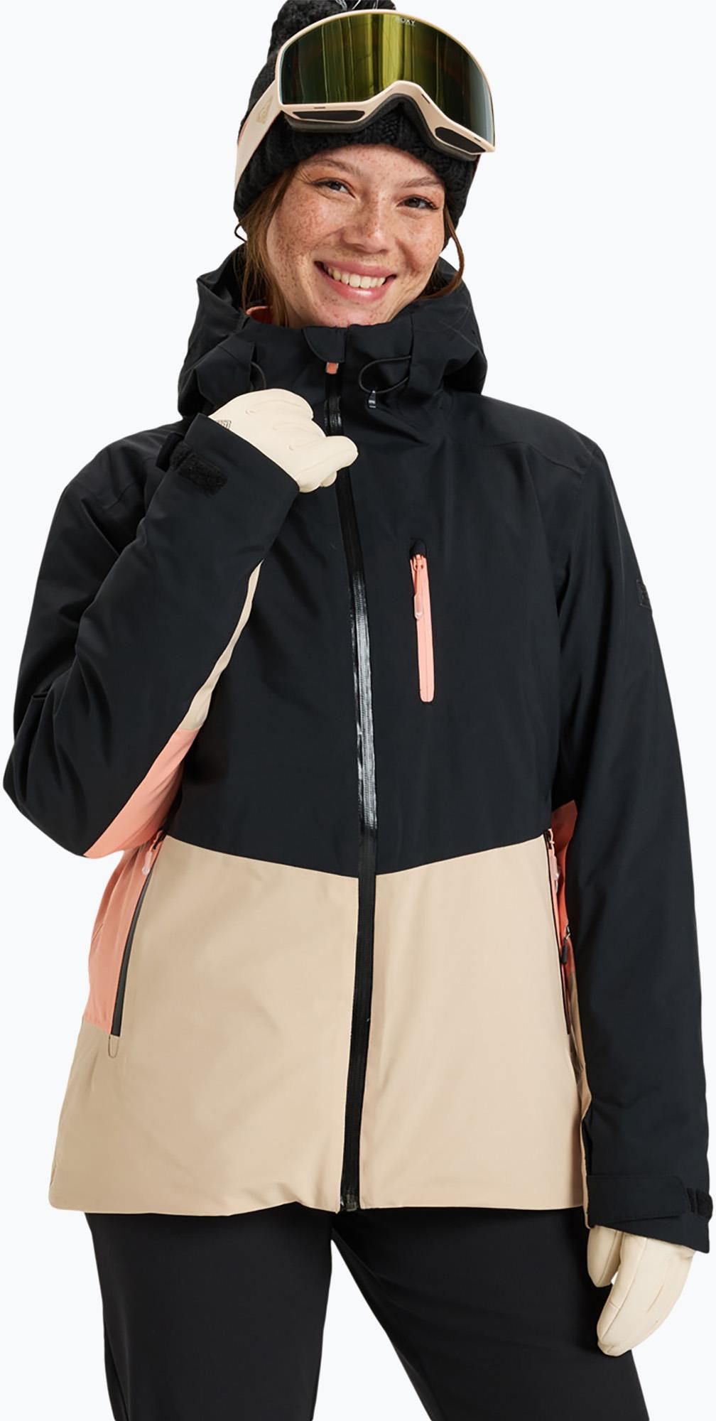 Kurtka śnieżna dla kobiet. Cechy tego produktu to: Krój: Short fit, dopasowany, Wodoodporność: technologia 10K ROXY DryFlight® [10.000 mm / 10.000 g], Trwała impregnacja hydrofobowa bez PFC, Klejone szwy na całej długości, Technologia: Technologia ROXY HYDROSMART w kołnierzu, Kompatybilny z pasem …