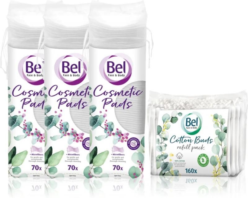 Bel Face & Body Cosmetic Pads + Cotton Buds, , Patyczki do uszu dla kobiet, Zawartość zestawu: Bel Face & Body waciki do demakijażu 3 x 70 szt. Bel Face & Body patyczki higieniczne 160 szt. Właściwości: ekonomiczne opakowanie pomagają usunąć makijaż i oczyścić cerę z delikatnego, ale solidnego materiału dla codziennej pielęgnacji cery delikatnie i skutecznie czyści uszy
