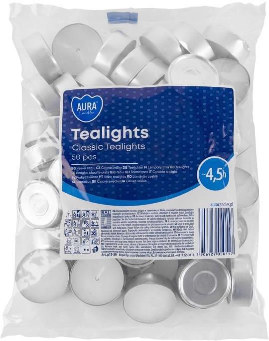 • AURA Podgrzewacze Tealights Classic 4,5h 50 szt. p15-50