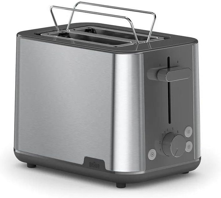 TOSTERY Toster PurShine HT 1510 szary OPIS Rozjaśnij swój poranek dzięki nowej kolekcji śniadaniowej PurShine. Pokochasz tę łatwą w użyciu i stylową linię produktów, która pomoże Ci szybko i smacznie zjeść śniadanie. Teraz możesz przyrządzić tosty dokładnie tak, jak lubisz z tosterem, który posiada dwie kieszenie na pieczywo, 8 ustawień przyrumieniania oraz funkcję rozmrażania i podgrzewania. Dodatkowo posiada zintegrowany ruszt, który umożliwia wygodne podgrzanie bułek. NAJWAŻNIEJSZE CECHY Ruszt do podgrzewania pieczywa Zintegrowany ruszt do podgrzewania pieczywa umożliwia wygodne podgrzewanie bułek i innych wypieków. 8 ustawień przyrumienienia Dzięki ośmiu różnym ustawieniom możesz wybrać preferowany stopień zarumienienia niezależnie od rodzaju pieczywa. Intuicyjny interfejs Z podświetlonymi przyciskami funkcji rozmrażania, podgrzewania i anulowania. Inteligentny system kontroli ciepła Dzięki inteligentnemu systemowi regulacji temperatury Braun możesz cieszyć się jednolitymi efektami przypieczenia w wielu cyklach opiekania. Funkcja umożliwiająca wysokie unoszenie pieczywa Funkcja wysokiego unoszenia pieczywa opracowana przez markę Braun pozwala z łatwością wyjmować nawet niewielkie kromki chleba. Odgrzewanie+ i rozmrażanie+ Zapewnia większą kontrolę nad pożądanym poziomem wypieczenia podczas podgrzewania lub rozmrażania chleba i tostów. System automatycznego wyśrodkowania Sprawia, że chleb zawsze znajduje się w idealnej pozycji, co zapewnia równomierne wypieczenie. 4-stopniowy system bezpieczeństwa Automatyczne wyłączanie, zabezpieczenie zapobiegające zacinaniu się, nienagrzewające się ścianki i doskonała stabilność urządzenia nawet przy nachyleniu do 10° zapewniają wygodę i bezpieczeństwo użytkowania. Dane techniczne Dane techniczne Odmrażanie: Tak Zatrzymanie opiekania: Tak Bezpieczeństwo/ochrona: 4-stopniowy Ustawienia zarumienienia: 8 Podgrzewanie: Tak Wyjmowana tacka na okruchy: Tak Umiejscowienie panelu sterowania: Z boku urządzenia Inteligentna kontrola ciepła: Tak  Funkcja wygodnego unoszenia: Nie System automatycznego wyrównywania chleba: Tak Specyfikacja Tworzywo wolne od BPA (części, które mają kontakt z jedzeniem): Tak Kolor: Stal nierdzewna / czarny Obudowa: Stal nierdzewna / plastik Rozmiar szczeliny: 3.5x13.2x11.9cm Zintegrowany system zwijania kabla zasilania: Tak Typ szczeliny: 2 kieszenie na pieczywo Moc w watach (W): 900 Przystawki Ruszt do podgrzewania pieczywa: Tak