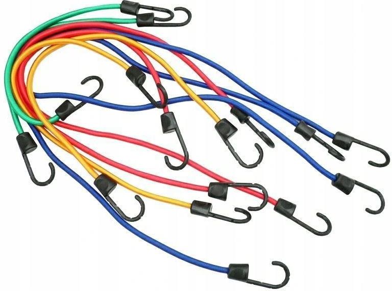 Przedmiotem aukcji jest: Zestaw linek elastycznych Cargo Net - 8szt. EAN: 5901741681686 SKU: 68168 Wysokiej jakości zestaw grubych linek elastycznych do mocowania bagażu czy przedmiotów przewożonych w bagażniku. Idealne także do spinania bagażu na przyczepie czy boksie dachowym. CHARAKTERYSTYKA: solidne gumowe linki w elastycznym oplocie wysoka odporność na rozciąganie średnica: 8mm zestaw zawiera 8 linek każda z linek zakończona dużym tworzywowym hakiem o wysokiej wytrzymałości Zestaw zawiera: 2 szt. linki o długości 40cm 2 szt. linki o długości 60cm 2 szt. linki o długości 80cm 2 szt. linki o długości 100cm