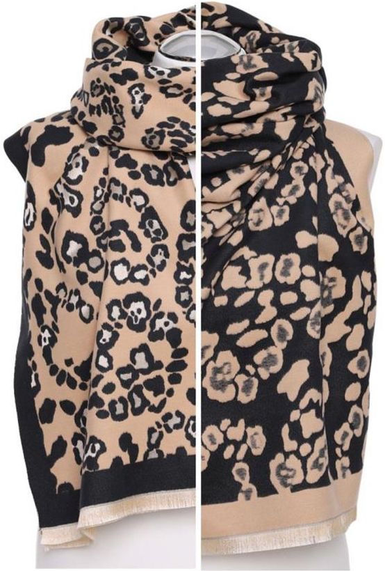 Ciepły Brązowy Szal Damski W Panterkę Moraj