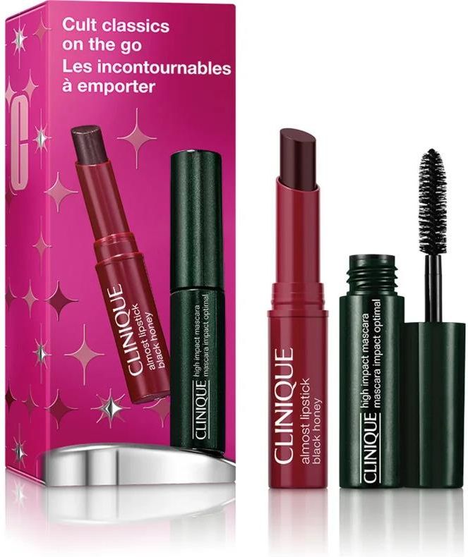 Clinique Holiday Cult Classics On The Go, 1 szt., Zestawy kosmetyków dla kobiet, Wszystko dla perfekcyjnego makijażu w jednym opakowaniu. Zestaw kosmetyków Clinique Holiday Cult Classics On The Go zawiera nie jeden, ale kilka elementów upiększających, które pomogą stworzyć lub wzbogacić rutynowy makijaż. Paczka pełna kosmetyków do makijażu ucieszy Ciebie lub, jako prezent, zachwyci Twoich bliskich. Zawartość zestawu: Clinique High Impact™ Mascara tusz zwiększający objętość rzęs 3,5 ml Clinique Almost Lipstick Black Honey tonujący balsam do ust 1,2 g Właściwości: doskonały pomysł na prezent sprawi radość każdej kobiecie zawiera mini-wersje produktów idealny na podróż Sposób użycia: Stosuj każdy z produktów z zestawu zgodnie z załączoną do niego instrukcją.