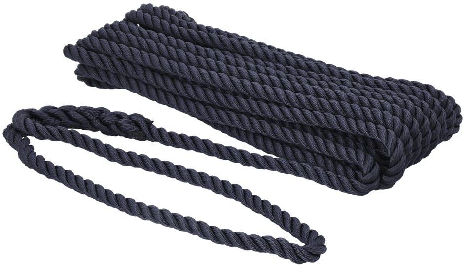Lina cumownicza z zaplecioną pętlą do bezpiecznego cumowania łodzi. Z trzech splotek z odpornego na promieniowanie UV poliestru.