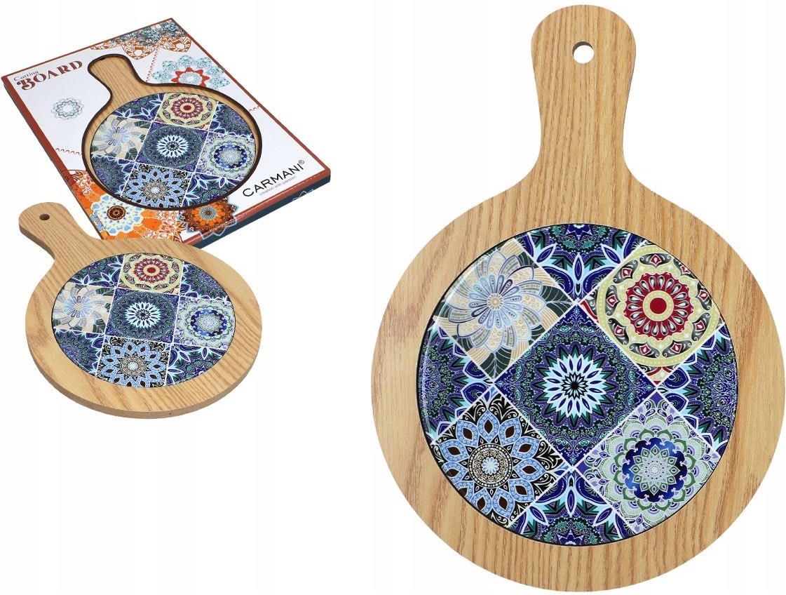 Wyobraź sobie, że zapach świeżo posiekanej mięty unosi się w powietrzu, a pod Twoimi dłońmi spoczywa nie zwykła deska – ale małe dzieło sztuki, które przenosi Cię prosto na gwarny targ w Marrakeszu. Deska do krojenia z serii Orientalnej marki Carmani to więcej niż funkcjonalny przedmiot – to zaproszenie do kulinarnej podróży z nutą egzotyki i odrobiną magii. Jej drewniana powierzchnia jest ciepła i naturalna, a ceramiczna wstawka, ozdobiona zachwycającym, kolorowym wzorem inspirowanym marokańską mozaiką, przyciąga wzrok jak talizman. To nie tylko praktyczna pomoc w kuchni, ale i stylowa taca do serwowania – doskonała na kawałek sera, kilka fig i lampkę wina przy świecach. Dzięki poręcznej rączce i solidnemu wykonaniu świetnie sprawdzi się zarówno na co dzień, jak i podczas spotkań z bliskimi. A kiedy akurat nie kroisz – nie chowaj jej do szuflady. Niech zdobi Twoją kuchnię tak, jak obraz zdobi ścianę. Zapakowana w eleganckie pudełko z okienkiem – gotowa, by rozkochać w sobie każdego od pierwszego spojrzenia. Nie kupujesz deski. Kupujesz klimat, zapachy, wspomnienia i opowieść. A wszystko zaczyna się właśnie tutaj. Wzór: 008-1453 Produkt 1 x podkładka z rączką 1 x pudełko Wymiary szerokość deski 19,5 cm długość deski 27,3 cm średnica talerza 15 cm wysokość deski 1 cm waga deski 325 g wymiary pudełka 20 cm x 28 cm x h1,5 cm Materiał ceramika drewno Użytkowanie dopuszczone do kontaktu z żywnością