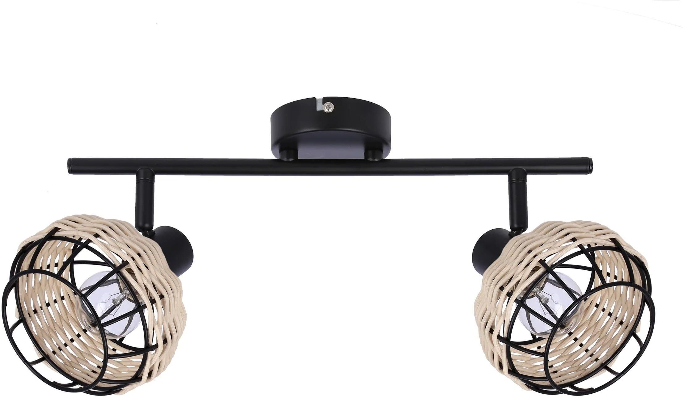 Nie zawiera głównego źródła światła Moc max (W): 40 Materiał: podstawa stalowa, klosz stalowy+ratan Kolor: czarny
