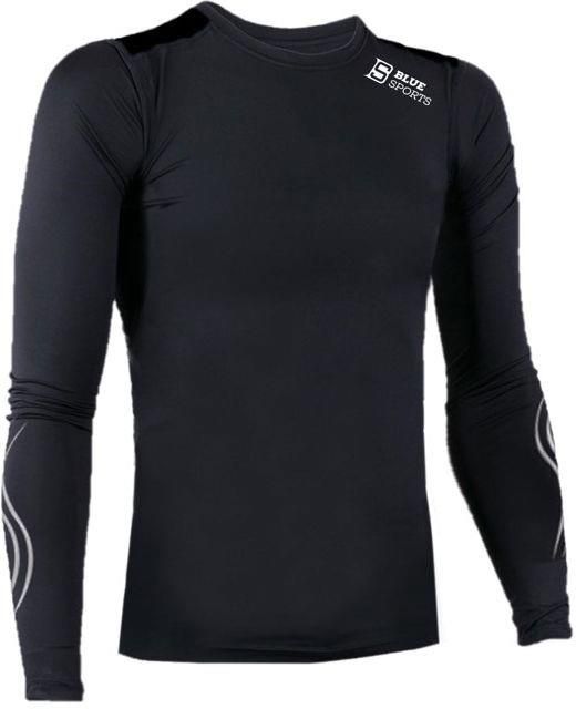 Koszulka ribano BlueSports Jr. Technologia odprowadzania wilgoci z poliestru i elastanu (92% poliester, 8% elastan). Silikonowe paski na ramionach ułatwiają trzymanie ochraniaczy na łokcie. Lekka kompresja.