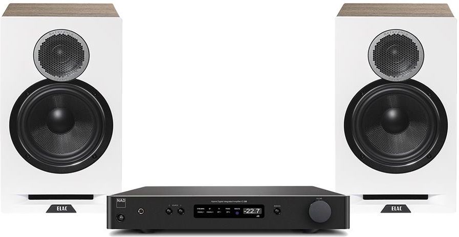 NAD C338 jest wzmacniaczem zintegrowanym, który za sprawa zastosowanych w nim rozwiązań technologicznych i konstrukcyjnych zapewnia niespotykaną elastyczność systemu audio. W jednym urządzeniu znajdują się wszystkie elementy, jakich szuka współczesny odbiorca muzyki. W C338 znajdziemy wbudowany Chromecast, starannie opracowaną z wykorzystaniem specjalnie modyfikowanych stopni wyjściowych Hypex UcD amplifikację w klasie D, zaawansowany przetwornik C/A, bogaty zestaw analogowych i cyfrowych wejść, wysokiej klasy przedwzmacniacz gramofonowy oraz wzmacniacz słuchawkowy. Całości dopełnia strumieniowanie dźwięku z urządzeń Bluetooth. Potwierdzeniem wysokiej klasy urządzenia jest nagroda "WZMACNIACZ BEST VALUE EISA 2017-2018". WZMACNIACZ "BEST VALUE" EISA 2017–2018 Uzasadnienie EISA: „NAD jest znany z niewielkich, ale wydajnych wzmacniaczy o potężnym uderzeniu. Jednak C 338 oferuje też coś więcej, coś zupełnie nowego. To pierwszy na świecie wzmacniacz stereofoniczny, kompatybilny z Chromecast, przesyłający muzykę z większości serwisów internetowych za pomocą aplikacji mobilnej. Dostępne są wejścia niemal wszystkich standardów – optyczne, koaksjalne, analogowe liniowe, z korekcją phono MM, aż po Bluetooth. Wzmacniacze w klasie D dostarczają 50 W na kanał, a wyjście słuchawkowe ma dedykowany obwód. W tej cenie nie znajdujemy dla C 338 godnego konkurenta”. Brzmienie. Precyzja. Moc. Do wnętrza C 338 trafiły specjalnie zaprojektowane układy wykorzystujące zmodyfikowaną wersję sprawdzonego stopnia wyjściowego Hypex UcD. Rozwiązanie to pozwala na uzyskanie znakomitej precyzji odtwarzanego dźwięku i pokaźnej, pozbawionej zniekształceń i szumów mocy. Mimo swojej niewielkiej wysokości, która ułatwia ustawienie urządzenia nawet w ograniczonej przestrzeni, C 338 dostarcza moc 50 W na kanał (8 Ω lub 4 Ω). Wartość ta pozwala zapewnić wysoki poziom głośności muzyki w nawet dość dużych pomieszczeniach odsłuchowych. Zastosowany zasilacz dostarcza 160 W ciągłej mocy i w ułamku sekundy może wygenerować ponad 300 W, aby dostarczać wzmacniaczowi dość energii, by mógł swobodnie odtworzyć nawet najbardziej gwałtowne fortissimo, jednocześnie zwinnie reagując na najdrobniejsze muzyczne detale. Wbudowany Chromecast NAD C338 jest pierwszym na świecie wzmacniaczem z wbudowaną usługą Chromecast, która pozwala strumieniować muzykę. Dzięki tej usłudze, można wskazać za pomocą telefonu źródło muzyki np. z serwisu  internetowego, a wzmacniacz zajmie się resztą, bez zużywania baterii i transferu w smartfonie. Chromecast oferuje kompatybilność ze wszystkimi muzycznymi serwisami w chmurze, które są dostępne w Polsce (Tidal, Spotify, Deezer, muzyka z Google Play). Muzyka poprzez Bluetooth™ Dzięki zintegrowanemu z wzmacniaczem modułowi Bluetooth®, C 338 może bezprzewodowo łączyć się z dowolnym smartfonem, tabletem lub urządzeniem obsługującym Bluetooth znajdującym się w zasięgu, aby bezproblemowo przesyłać strumieniowo muzykę wysokiej jakości z ulubionych aplikacji muzycznych. Spotify Connect® Serwis muzyczny Spotify oferuje miliony nagrań z całego świata, zapewniając praktycznie nieograniczony dostęp do  niezwykle bogatych zasobów muzycznych. Dzięki wyposażeniu wzmacniacza C 338 w funkcję Spotify Connect, ma on bezpośredni dostęp do strumienia danych Spotify, umożliwiając odtwarzanie muzyki bez konieczności korzystania z transferu danych poprzez smartfon lub tablet. System ten umożliwia też bardzo łatwe przenoszenie odtwarzania pomiędzy kompatybilnymi urządzeniami audio różnych marek. Analogowa muzyka z winylu C 338 został wyposażony w najlepszy w swojej klasie przedwzmacniacz gramofonowy obsługujący wkładki MM. Odznacza się on precyzyjną korekcją RIAA z szerokim  marginesem przesterowania, wyjątkowo niskim poziomem szumów oraz innowacyjnym dolnozaporowym filtrem sprzężenia zwrotnego. Jego zadaniem jest wyeliminowanie szkodliwego sprzężenia akustycznego pomiędzy wkładką gramofonową a kolumnami głośnikowymi. Takie rozwiązanie gwarantuje znacznie wyższą jakość dźwięku niż spotykane w niektórych gramofonach wbudowane przedwzmacniacze. Wzmacniacz słuchawkowy Do układów audio C 338 wbudowany został w osobny wzmacniacz słuchawkowy o niskiej impedancji wyjściowej i bardzo dużych możliwościach w zakresie napięcia sygnału wyjściowego, dzięki czemu możliwe jest wysterowanie nawet bardzo wymagających słuchawek studyjnych o wysokiej impedancji. Debut Reference B6 ELAC DBR62 to podstawkowa kolumna głośnikowa, która wchodzi w skład najnowszej serii Debut Reference. Liczne udoskonalenia akustyczne i stylistyczne w porównaniu do linii Debut sprawiają, że nowy model stanowi połączenie tradycji z nowoczesnością i brzmi równie świetnie, jak wygląda. Aby sprostać wymaganiom przyszłych użytkowników, inżynierowie w najnowszej konstrukcji sięgnęli po zaawansowane rozwiązania. Połączenie nowo opracowanego falowodu i bardziej otwartej konstrukcji maskownicy udoskonala odpowiedź wysokich częstotliwości. Głośnik niskotonowy korzysta z nowo odlewanego chassis, które pozwala uzyskać lepszą sztywność, wzmocnić przednią ściankę i zminimalizować rezonans samego chassis. Projektanci do ograniczenia zniekształceń generowanych przez wibracje zastosowali specjalne wzmocnienia, łączące górną płytę i boczne panele, które zmniejszają drgania obudowy i jednocześnie redukują podbarwienie dźwięku. Natomiast nowy port wentylacyjny znacząco udoskonala jakość dźwięku. Dzięki niemu możliwe jest obniżenie poziomu szumu generowanego podczas pracy układu bas-refleks oraz zwiększenie dynamiki basu. Od strony technicznej ELAC DBR62 jest 2-drożną konstrukcją. Na sekcję wysokotonową składa się 25-milimetrowa tekstylna kopułka, z kolei głośnik niskotonowy to 165-milimetrowa jednostka z membraną z 